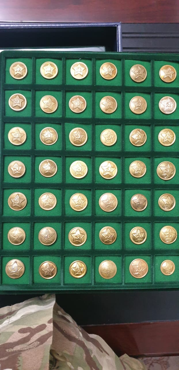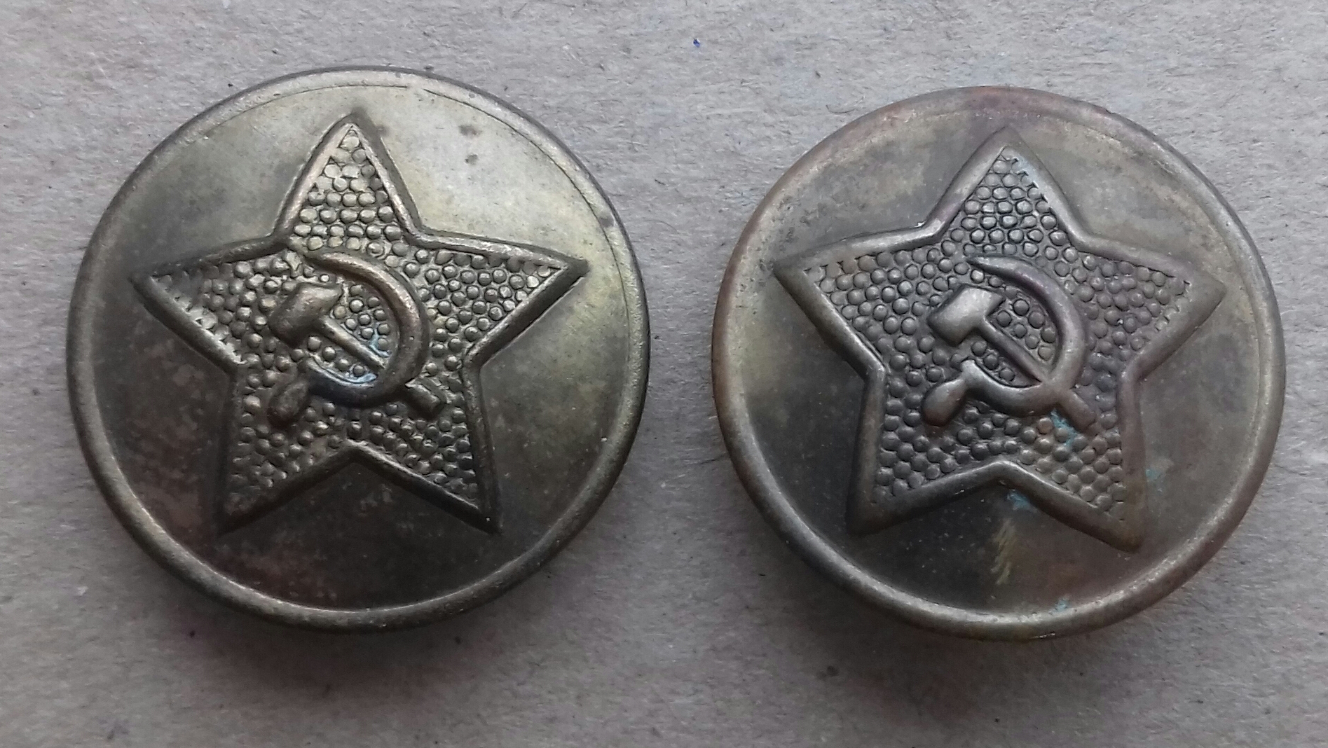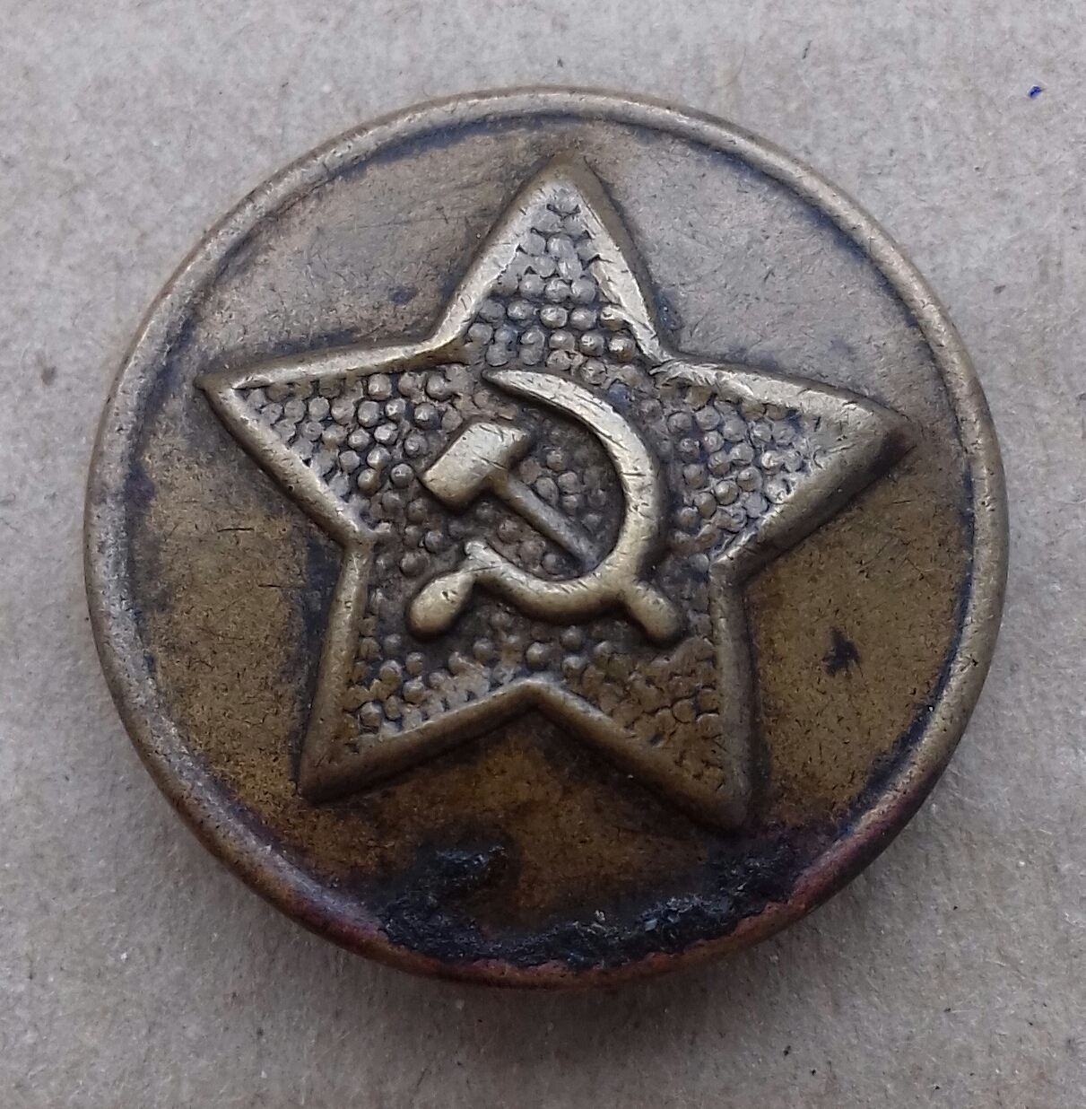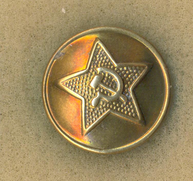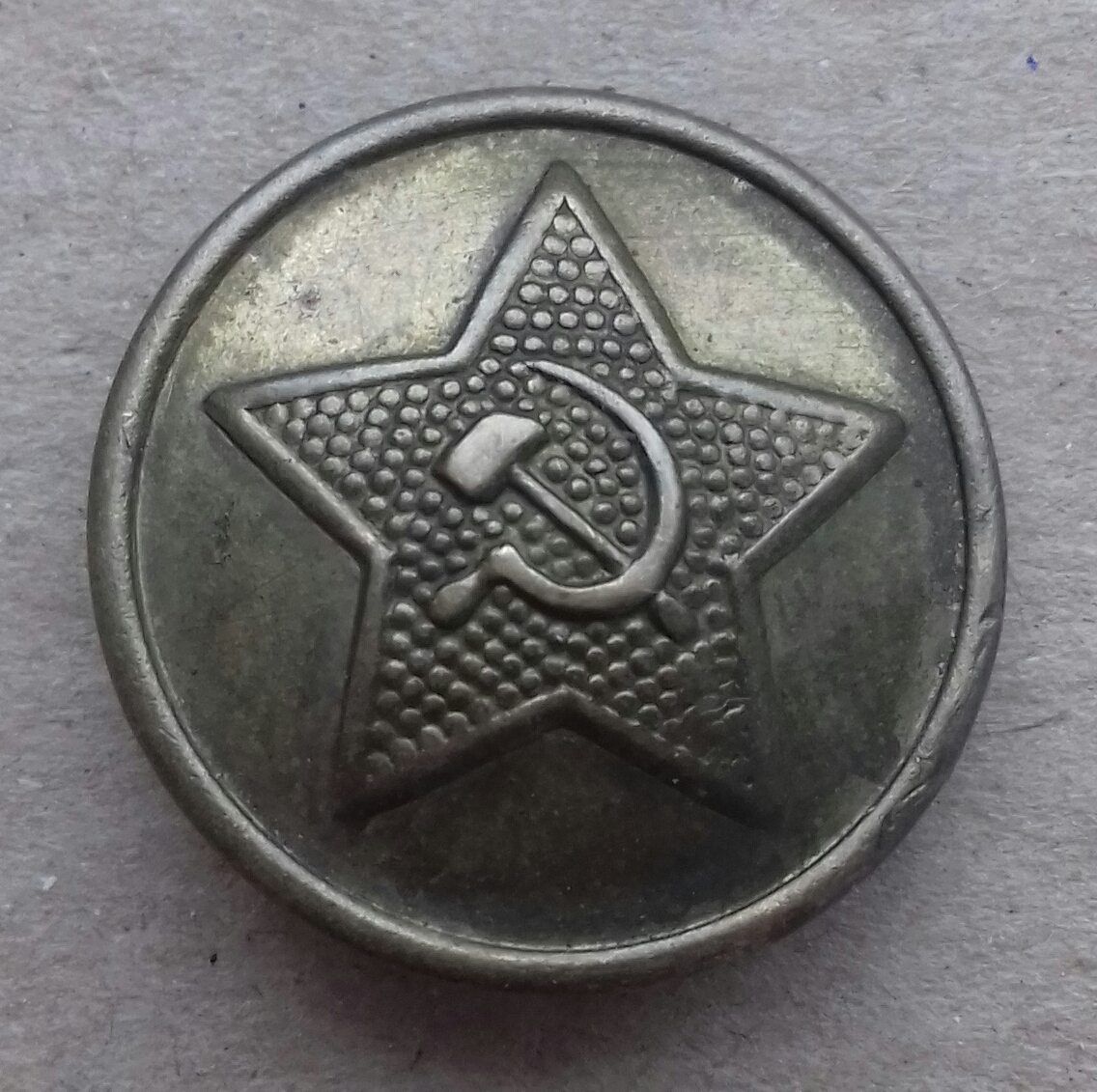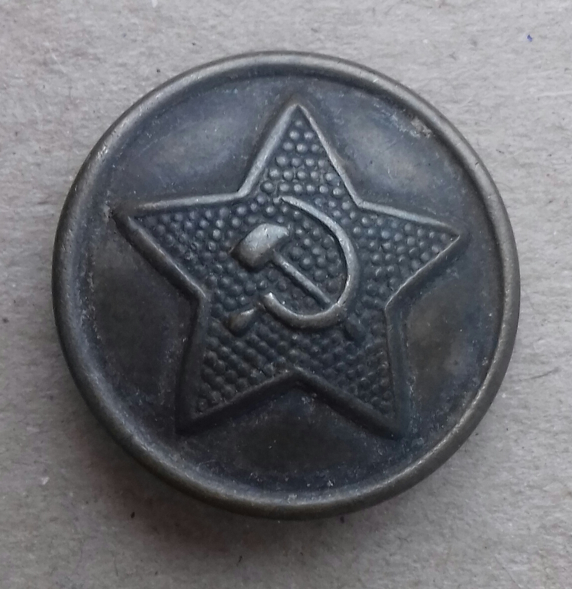 Шамиль. Скидываю фото пуговицы на мой взгляд позолоченной (в цвет золота). Диаметр 22 мм, со звездой. Мосштамп 1953 год.
