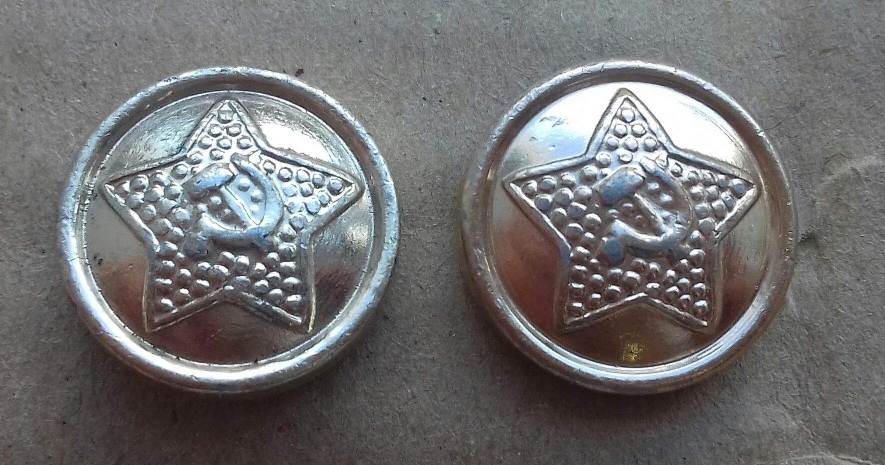 Только, что прочитал беседу двух Александров. Вы на меня возлагаете большую ответственность. Ведь наши рассуждения читают много людей и коллекционеры, и продавцы. Для некоторых наше мнение может оказаться решающим. Я себя, пока, не считаю авторитетной личностью в данной области. Собираю советские военные пуговицы чуть больше года, а до этого немного собирал царские. Но постараюсь своё, по возможности, объективное мнение. Фото этих пуговиц я скопировал и в ближайшее время проведу подробный анализ. Я у этого продавца (Reglan) в прошлом году покупал пуговицы, в том числе цельноштампованную со звездой (без ободка) 1965 года. Также спрашивал нет ли этих пуговиц с перевёрнутым реверсом. Но когда у него стали появляться новоделы (или копии) пуговиц для реконструкторов, то интерес к его пуговицам пропал. Возможно и пуговица 18 мм 1965 года новодел? Документов завода Мосштамп у нас нет и подтвердить мы не сможем. Но проанализировать, сравнить с аналогичными того же периода мы сможем. Поэтому немного терпения и постараюсь что-нибудь представить. Но ещё раз предупреждаю, я - не эксперт.