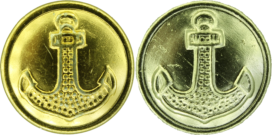 Пока жду, решил небольшое (по имеющимся в наличии) сравнение составных алюминиевых пуговиц с якорем диаметром 22 мм разных цветовых покрытий. Мне казалось, что используют одни и те же штампы при изготовление пуговиц с якорем, а затем уже покрывают в разные цвета.
