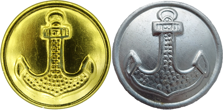 Шамиль. Серебристые составные алюминиевые пуговицы с якорем действительно встречаются редко. Даже я бы сказал реже латунных составных серебристых с якорем. А по поводу разновидностей штампа я тоже считаю не стоит вносить мельчайшие отличия, а вносить только те которые явно видны.