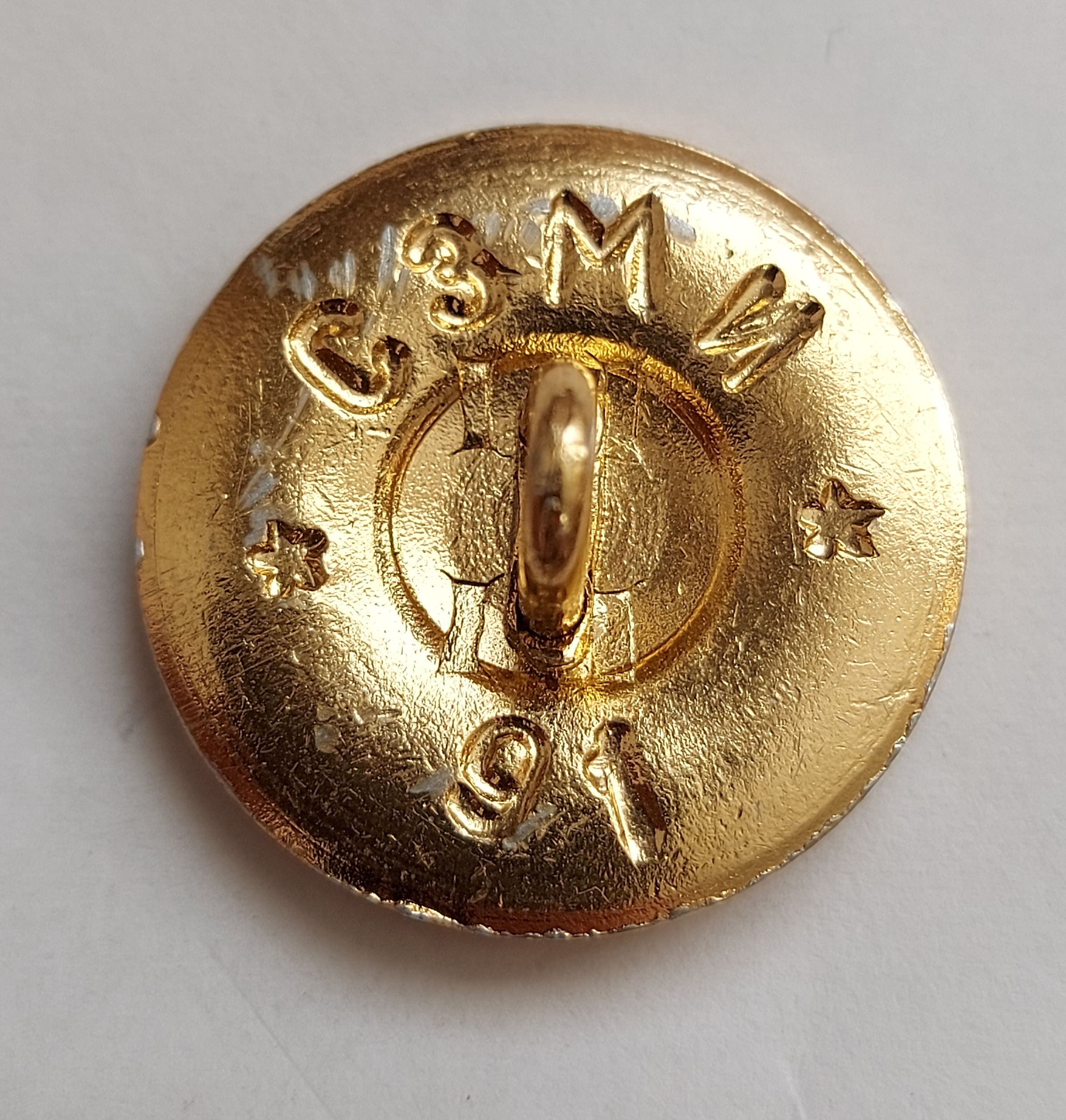 Шамиль. Попалась с таким клеймом первый раз. Посмотрел пуговицы РФ, с таким клеймом нет. По пуговицам гражданских ведомств СССР тоже подобное клеймо не попадалось.