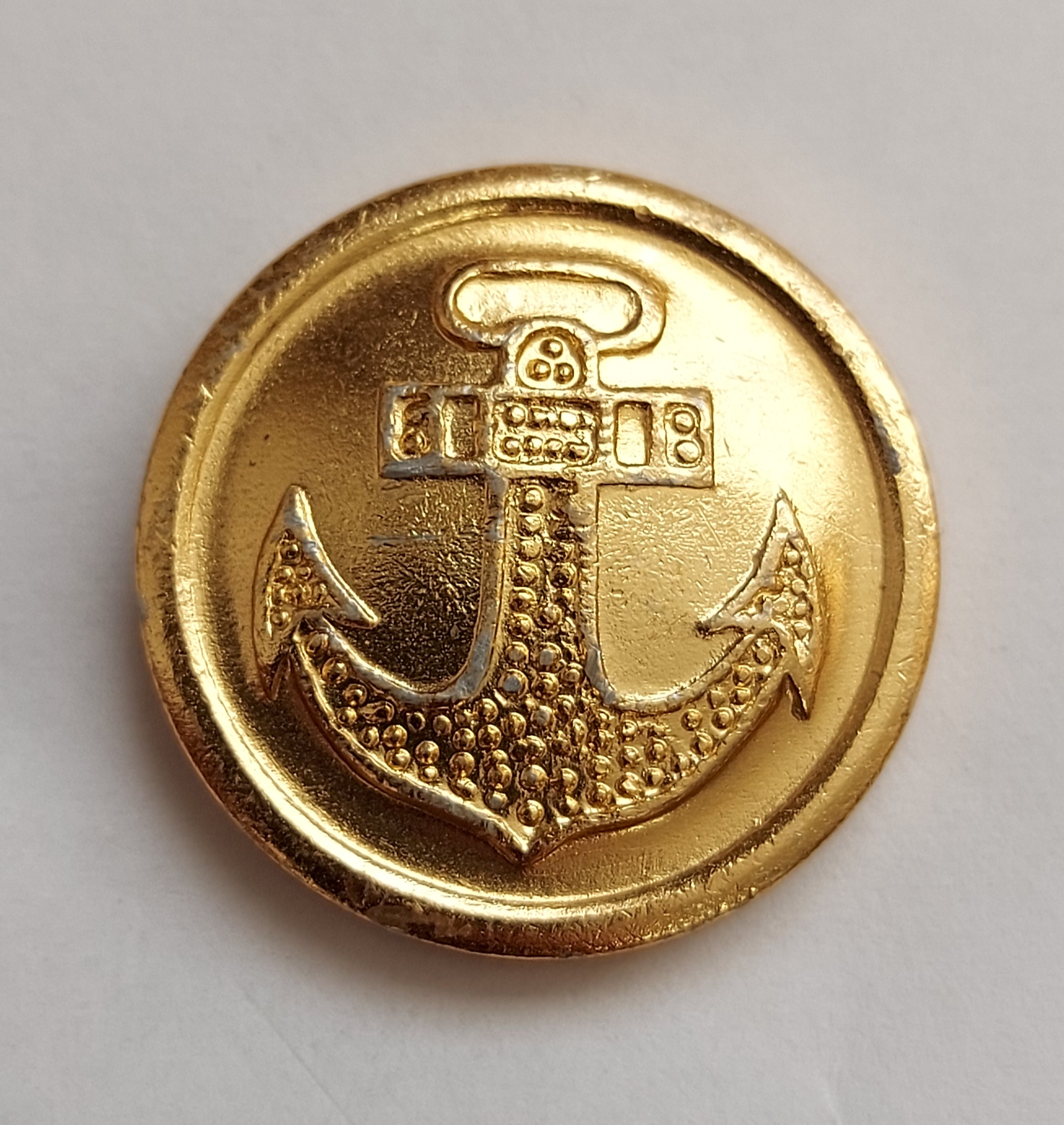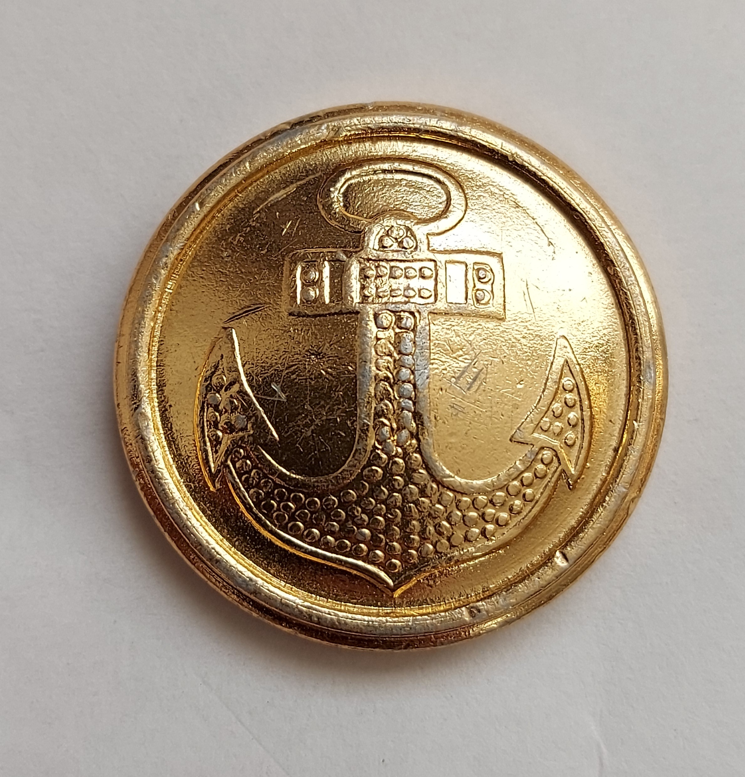 Шамиль! Скидываю несколько пуговиц к разделу цельноштампованных. Цельноштампованная пуговица с якорем, диаметр 22 мм, СЗМИ 1990 год, аверс повернут относительно реверса на 270 гралусов