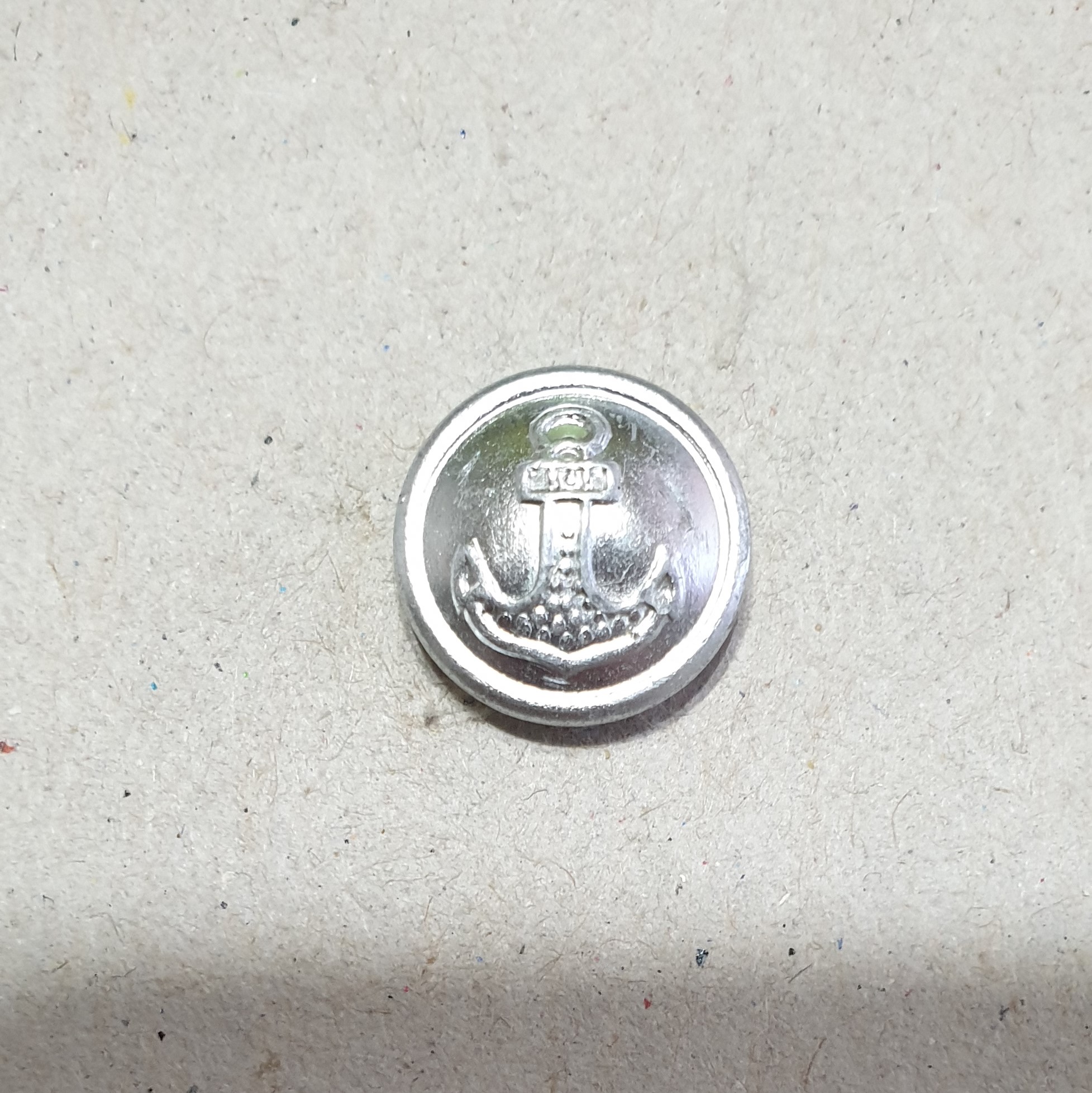 Дополнение к разделу цельноштампованных пуговиц. Диаметр 14 мм, с якорем, мосштамп 1987 год. Аверс повернут относительно реверса на 90 градусов влево.
