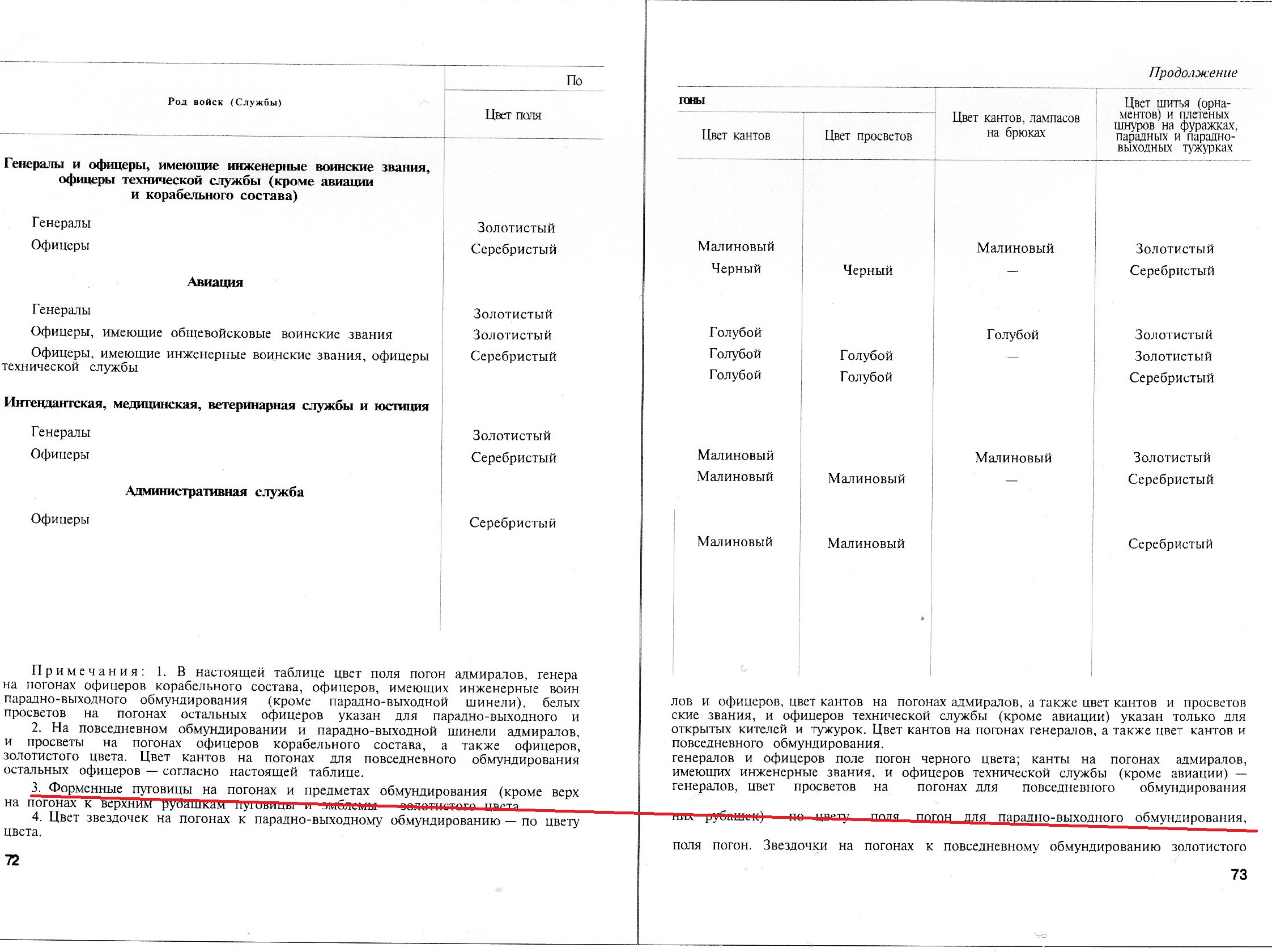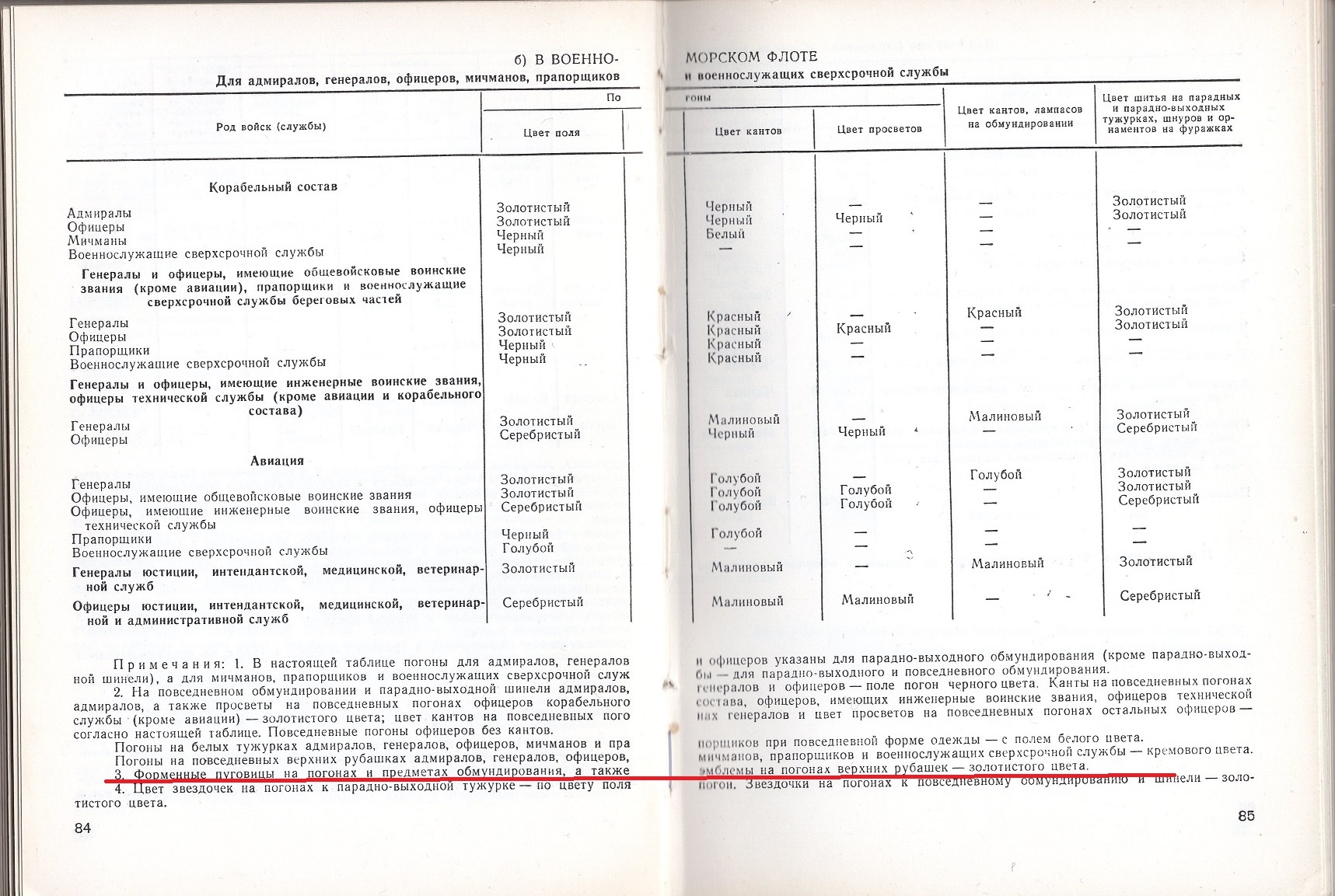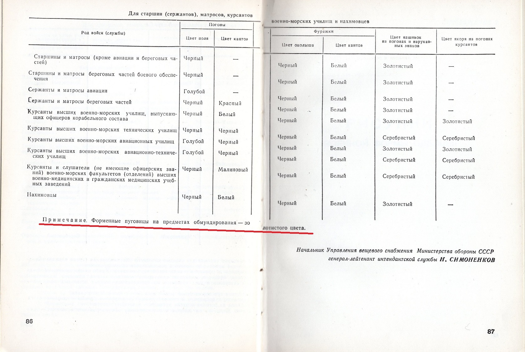 ПНФ- 1973 : ... пуговицы на погонах и предметах обмундирования золотистого цвета.