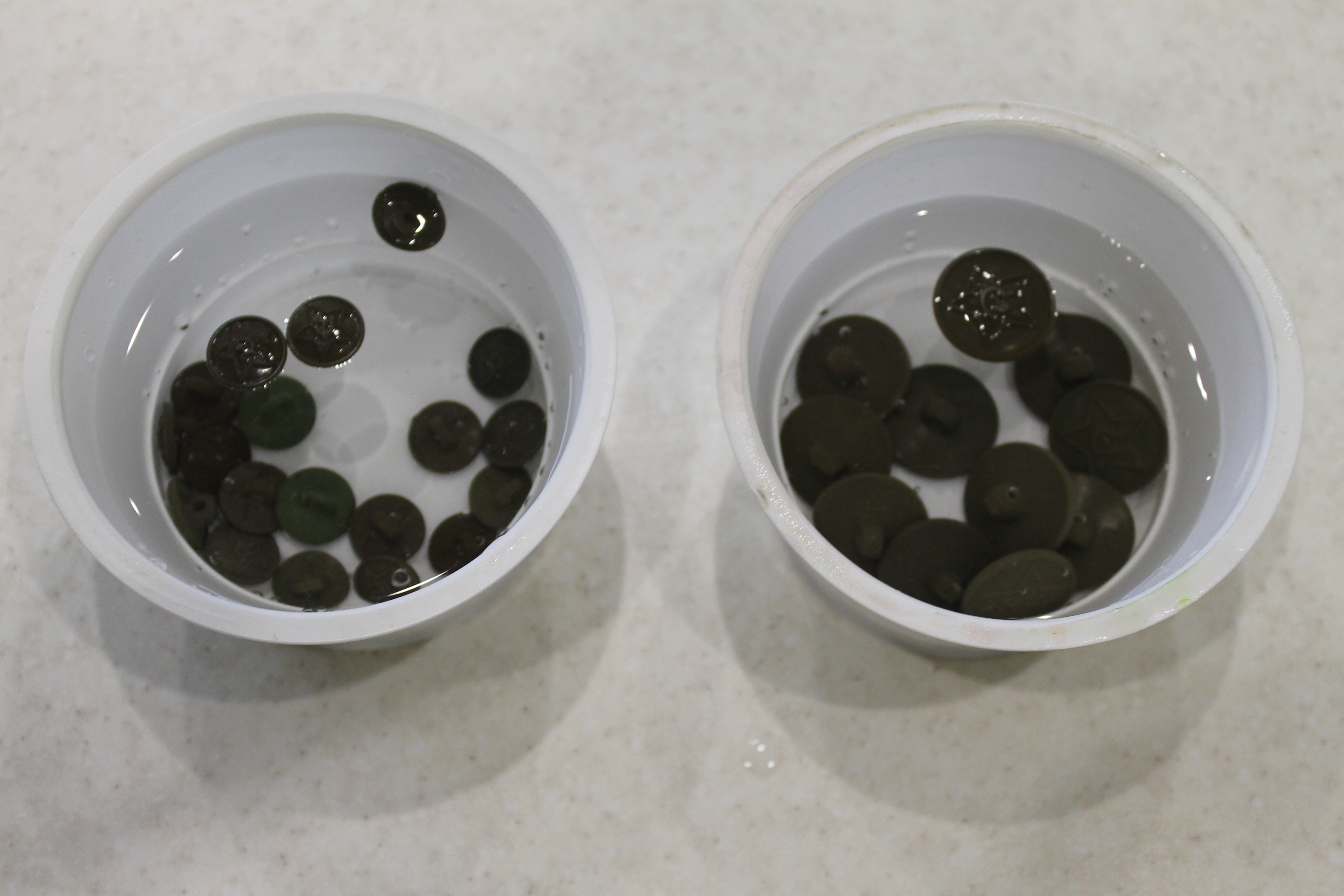 Отдыхать некогда, продолжаем Раздел пластиковых пуговиц. Наконец-то выяснил из какого материала сделаны пуговицы диаметром 14 мм с клеймом ГФ 1966-1970 годов. Пришлось испортить одну пуговицу 1969 года. Пуговица в пламени не плавилась и не горела, а только обугливалась. Т.е. это терморективный пластик. Ключевыми факторами явились запах и поверхность после выгорания. Запах был резкий, как подтвердили присутствующие при испытании, пахло формальдегидом. Когда поджигали зажигалкой, то поверхность была обугленной, но, когда я поджог на газовой плите, то поверхность стала белой - это выгорал краситель. Поэтому пришёл к заключению, что пластик этот - АМИНОПЛАСТ. К этому шёл с самого начала, но не было запаха аммиака, как писалось в первых источниках. Но в полных источниках всё подтвердилось.