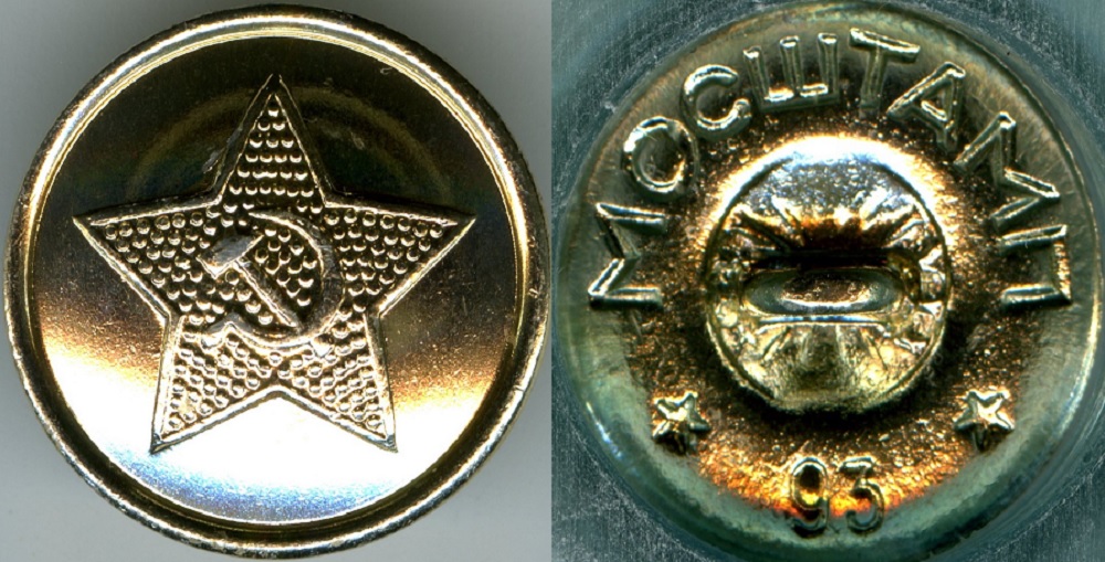 Шамиль. Сравнил три пуговицы. Количество точек одинаковое в пределах 68-70 штук. Серп и молот по форме практически одинаковый. Единственно у пуговицы у которой аверс не повернут относительно реверса звезда более выпуклая.