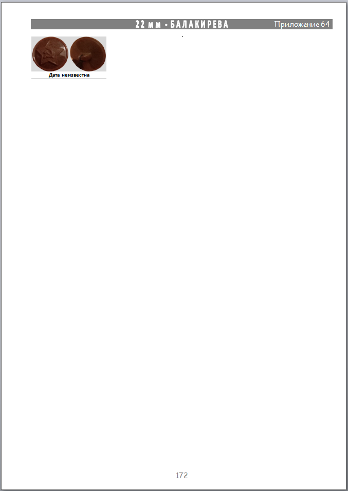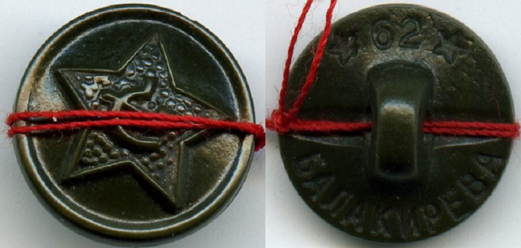 Спасибо за фото. К пуговицам без клейма мы подойдём попозже. Сейчас выкладываю две странички с пуговицей фабрики им. Балакирева диаметром 22 мм. Спасибо за фотографии коллегу ksologub (не знаю Вашего имени). Материал данной пуговицы неизвестен, а цвет я выбрал коричневый (по фото). Возможно я ошибаюсь и коллеги поправят меня.