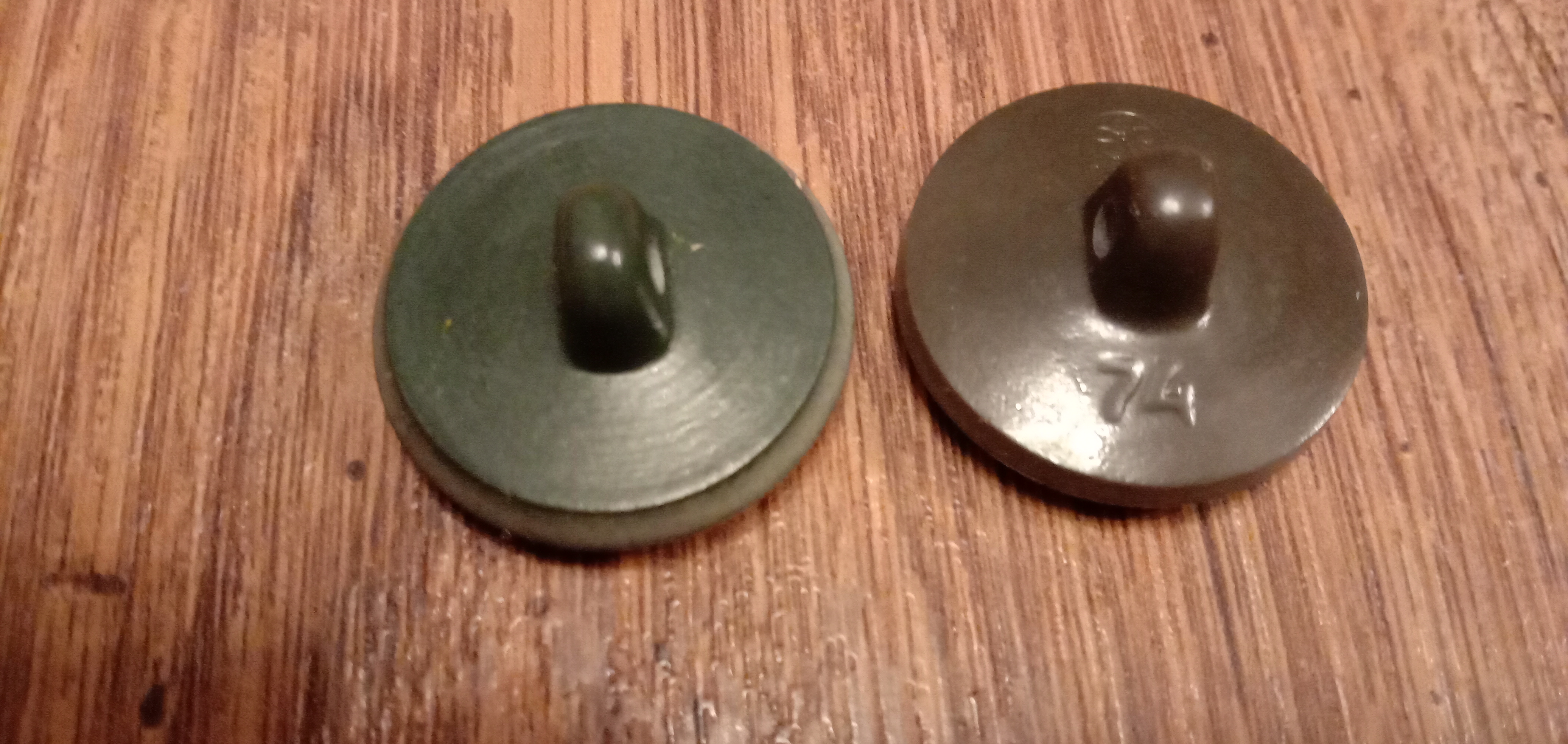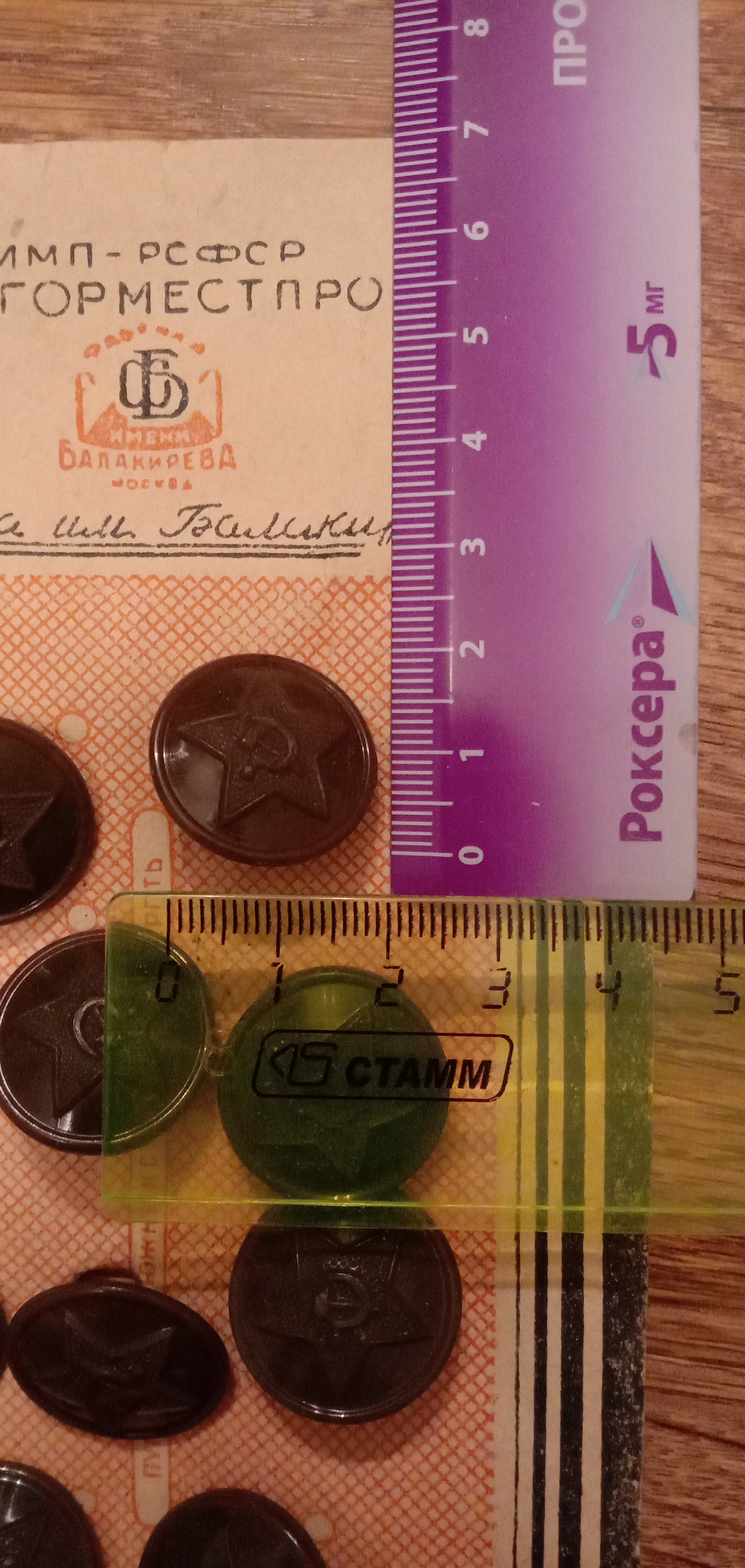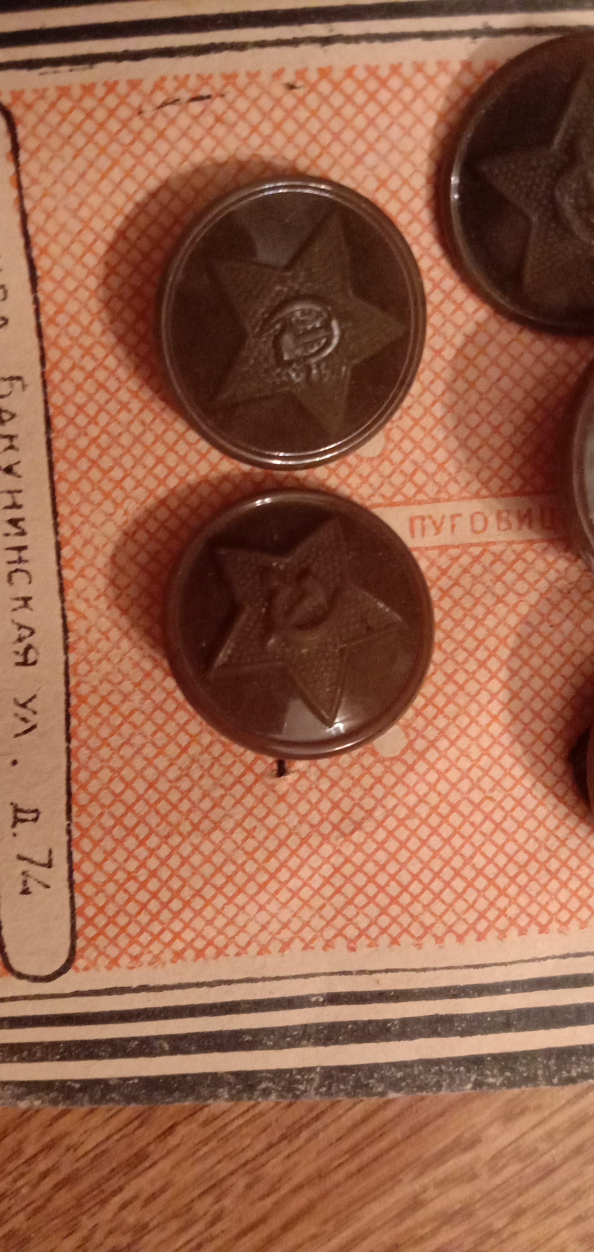 Отличные фото! Огромное спасибо! Точно будет новая таблица. Так как до этого мы рассматривали пуговицы диаметром 14 мм. Впервые вижу диаметр 22 мм. Возможно, что это пуговицы 1959 года, когда впервые начали появляться пластиковые.
