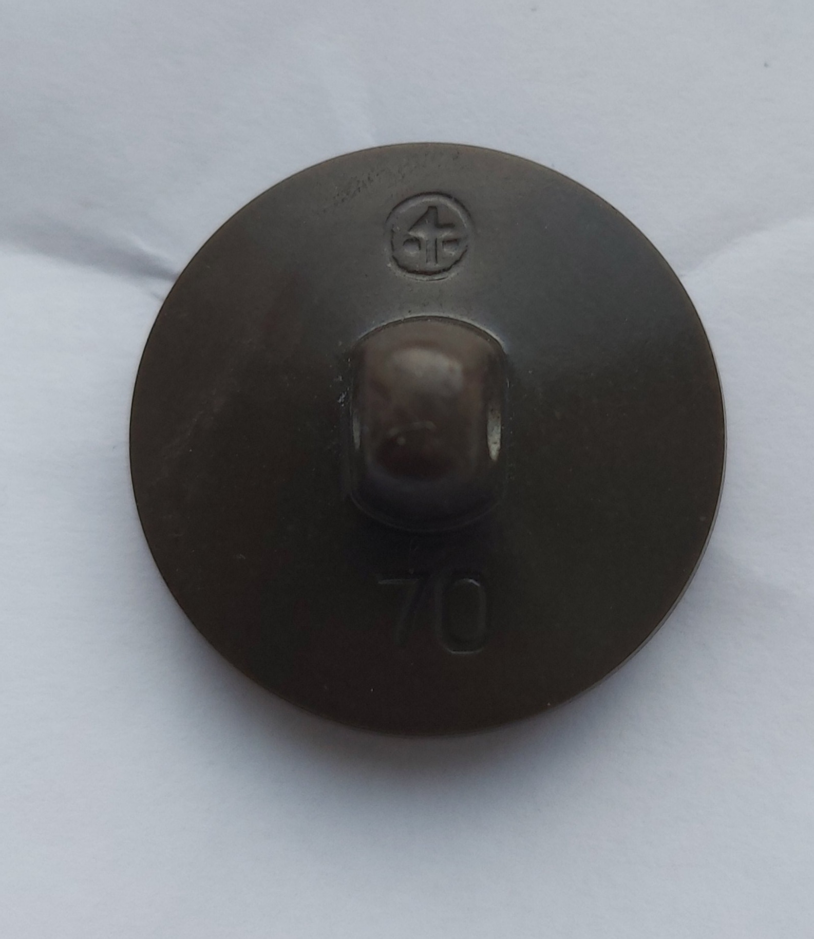 Оставляю пока, как НЕИЗВЕСТНЫЙ производитель. Клеймо на коробке может указывать только на то, что оно принадлежит «Московскому производственному пластмассово-фурнитурному объединению филиал №1». В это объединение могут входить несколько фабрик Москвы и Московской области, выпускающие пуговицы для СА. Делаю вывод - и фабрика им. Балакирева, и фабрика №4, и ещё кто-то сдали выпускать пуговицы с одним клеймом и все одновременно, или поочередно в разные года (что подтверждается разным воспроизведением клейма).