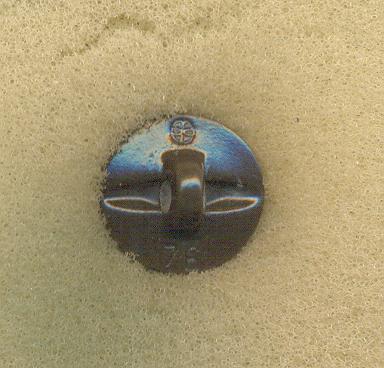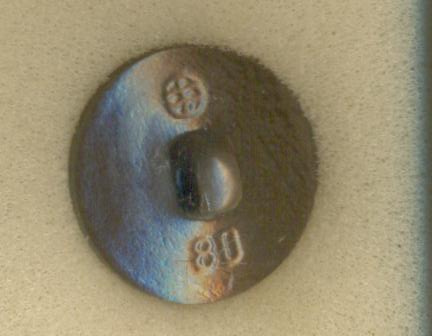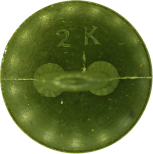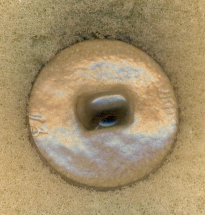 Алексей! Я уже выкладывал таблицы с такой пуговицей, но там мелко и трудно всё разглядеть. Вот пуговица с клеймом "2К". Похожую показывал Леонид только другого цвета. Я вроде задавал вопрос по ней, что там просматривается тоже какое-то клеймо.