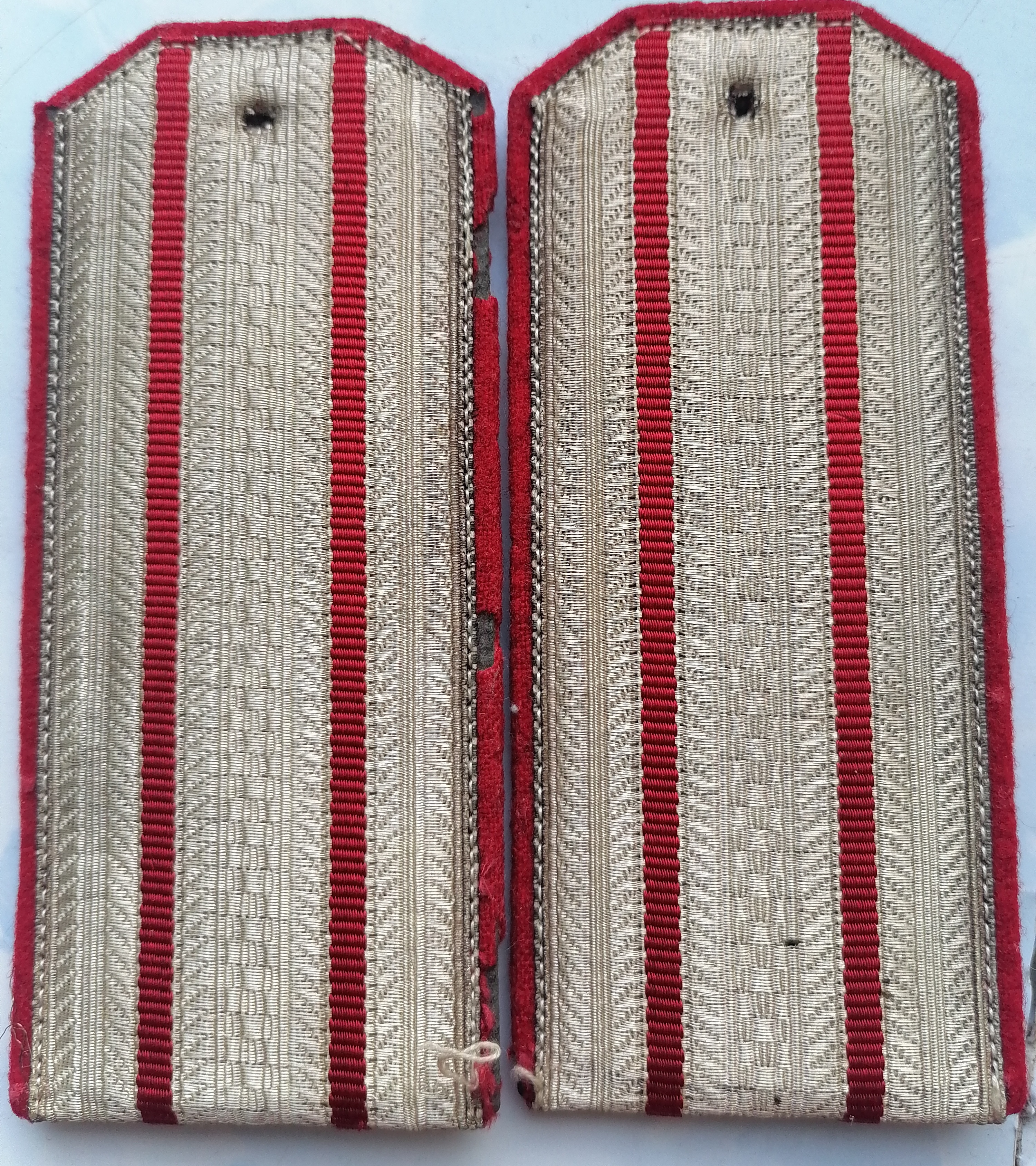 К белым погонам жёлтые эмблемы шли, белые к золотым погонам. По фото видно что белые.