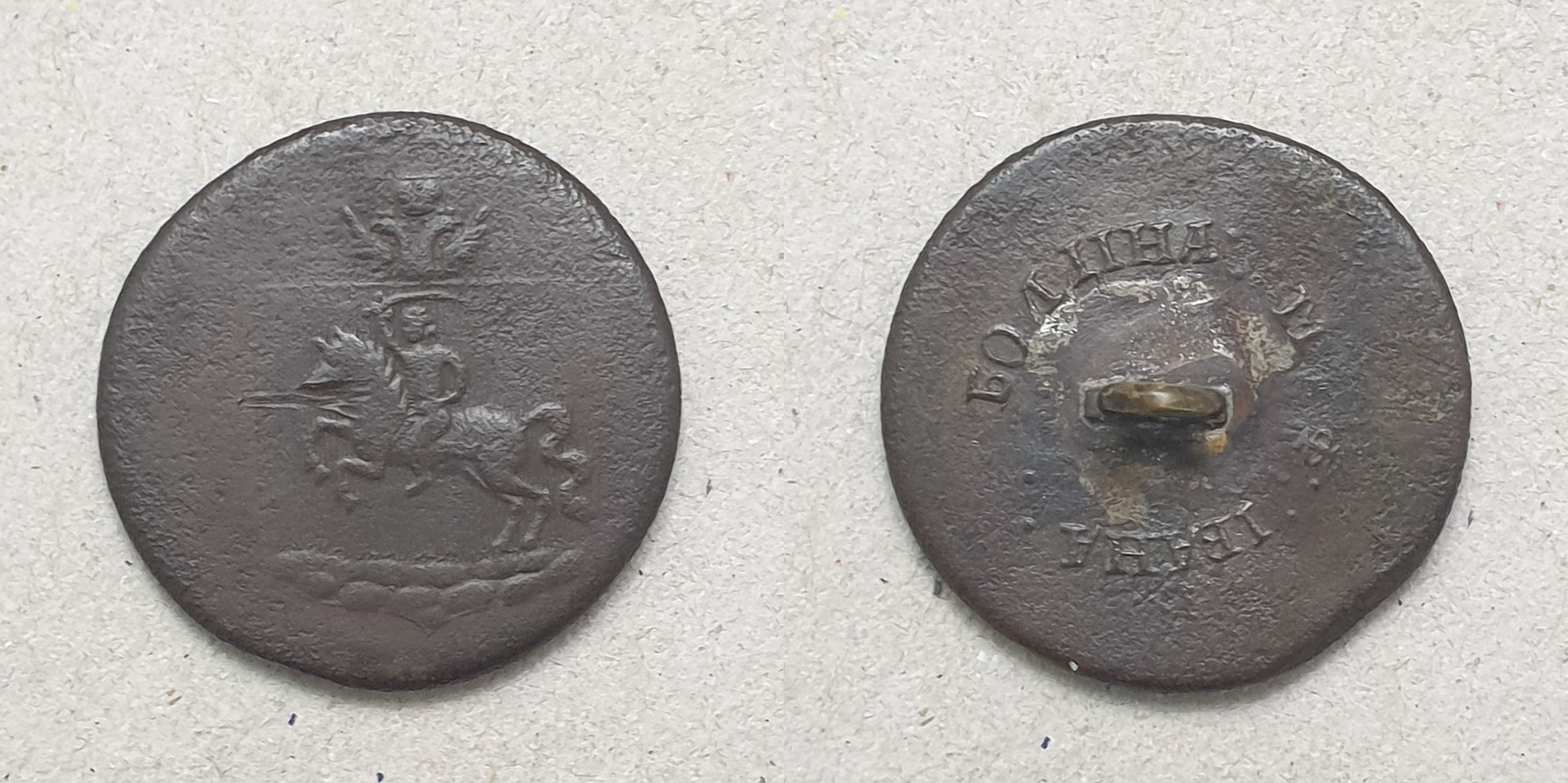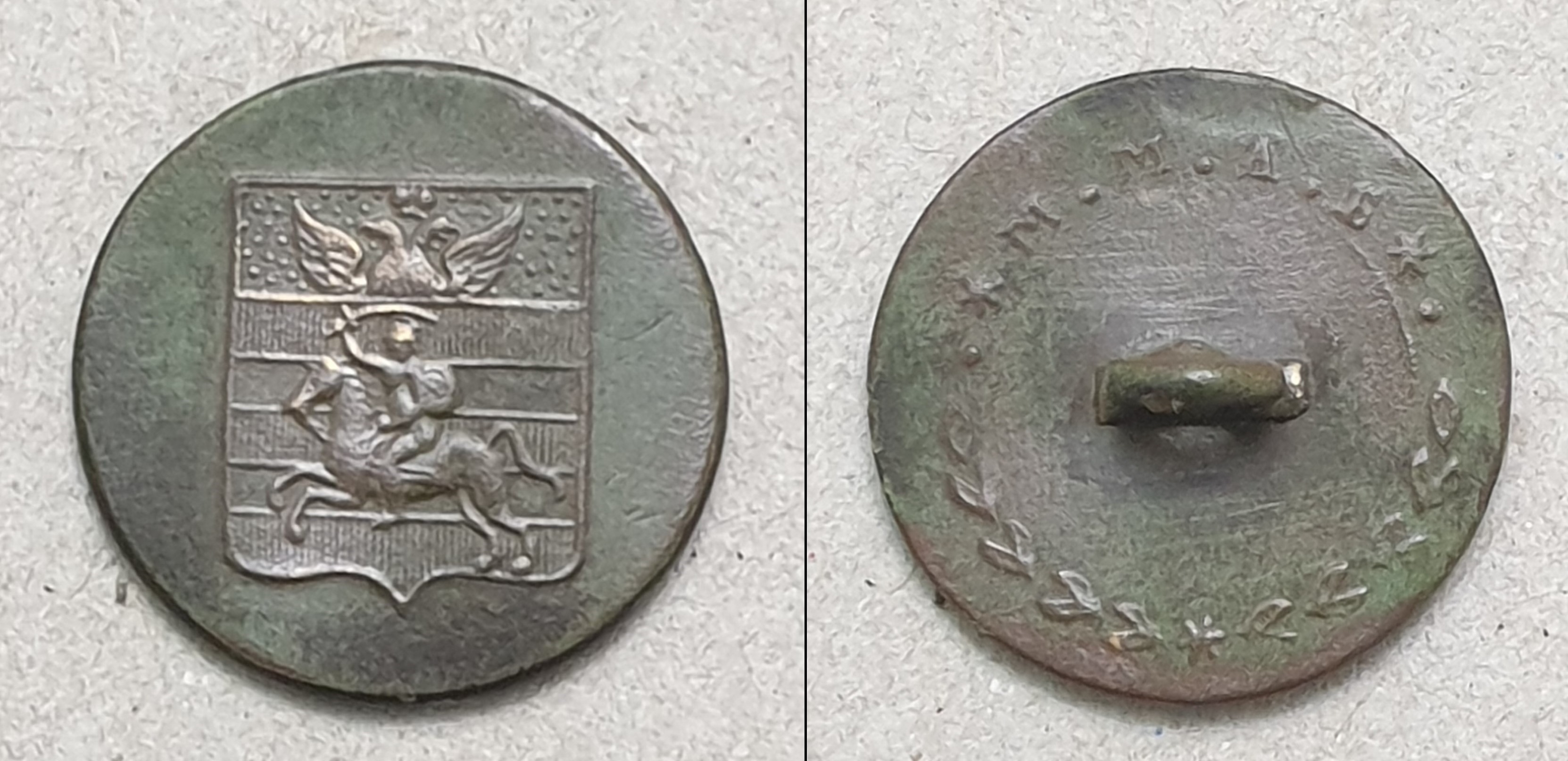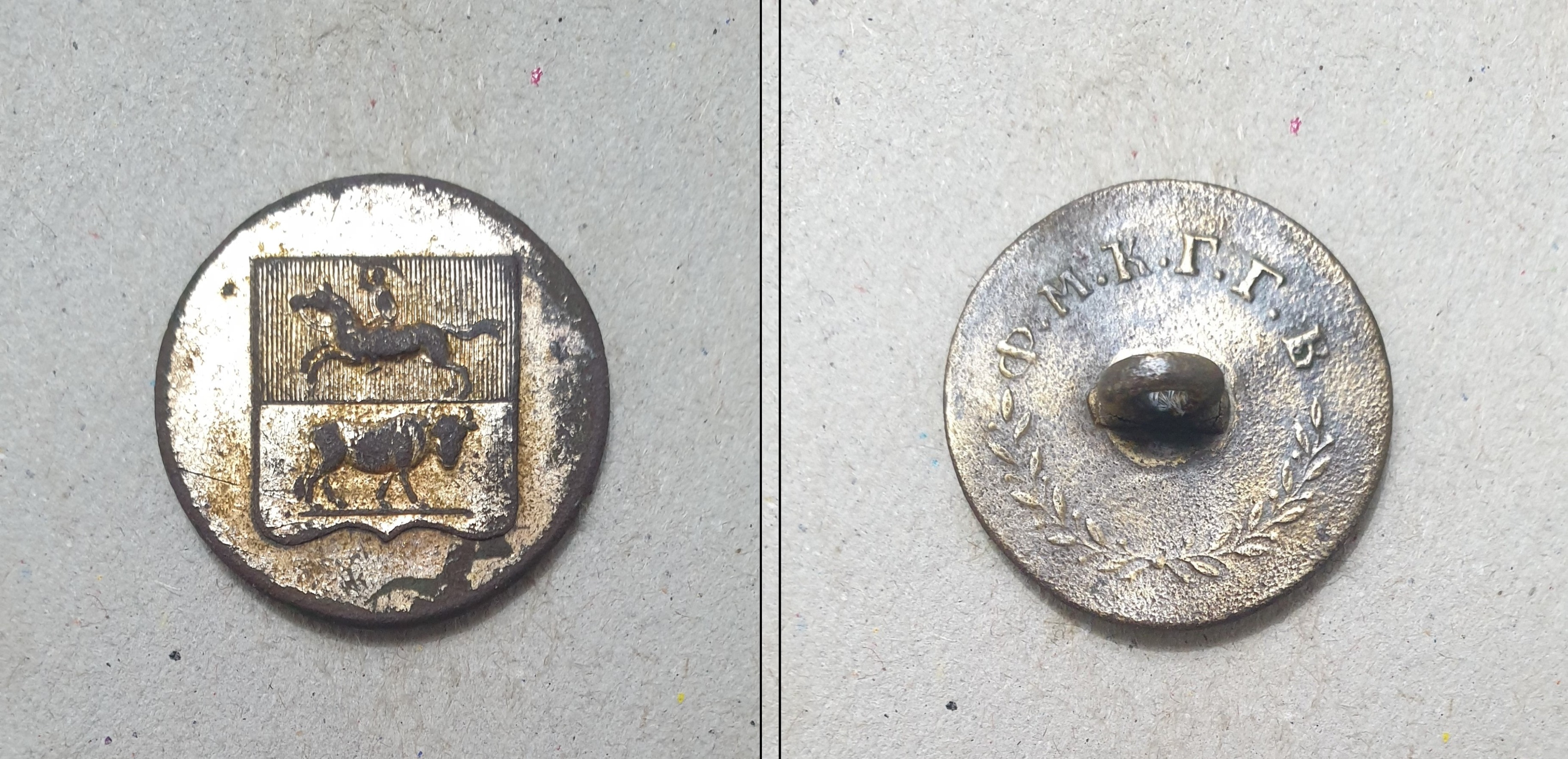 Леонид! Есть вопросы и по двум пуговицам Гродненской губернии: 21 мм (с трещинами) и 22,5 мм с абривиатурой "О.Ф.М.К.Г.Г.В." или "С.Ф.М.К.Г.Г.В."