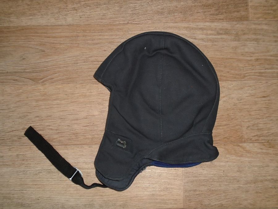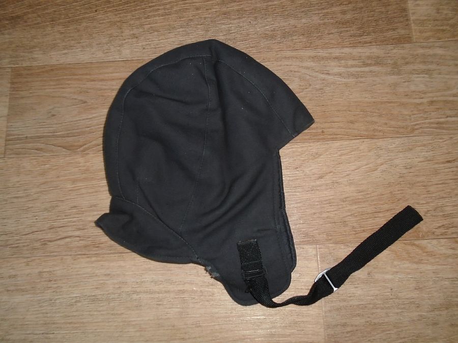 Черного цвета - защитный зимний шлем для специалистов инженерно-авиационной службы.