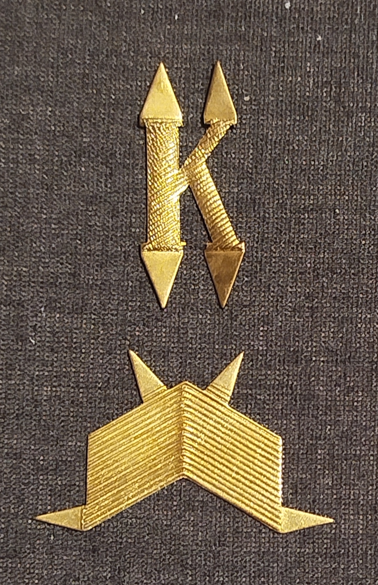 Треугольные крепления очень схожи с креплениями на металлической букве "К" , введенной для вшивных погон унифицированного кителя в 1992 году, но в том же Приказе главкома ВС СНГ упоминаются " нашивки золотистого цвета". Кстати, какие в тот период должны быть нашивки : из вискозного или металлизированного галуна?