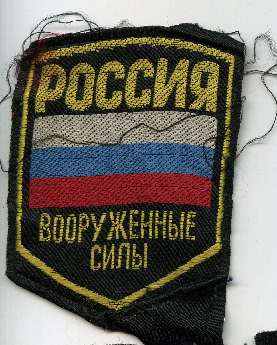 Повторюсь, что был свидетелем выдачи со склада в 1993 году полевой формы с фабрично пришитыми нарукавными знаками "Россия. Вооруженные Силы".