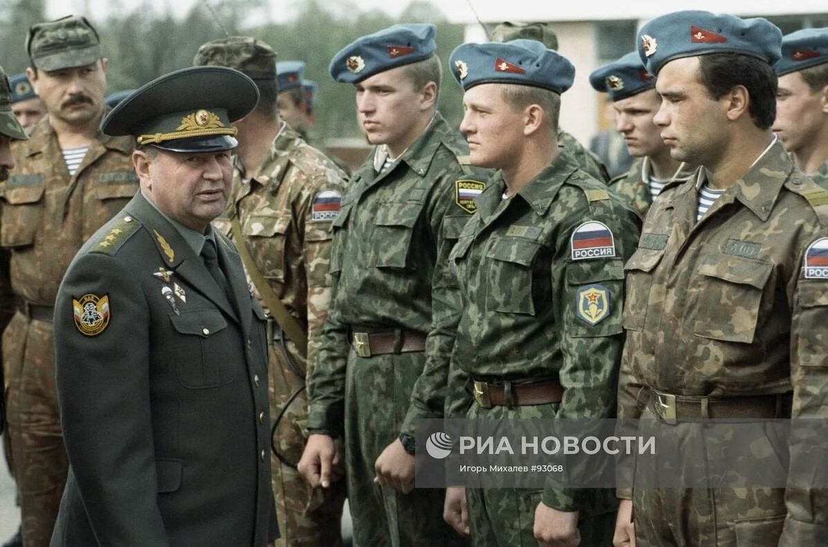 На фото Е.Н. Подколзин - командующий ВДВ в 1991-96 гг. Кстати, обратите внимание на знак на левом рукаве.