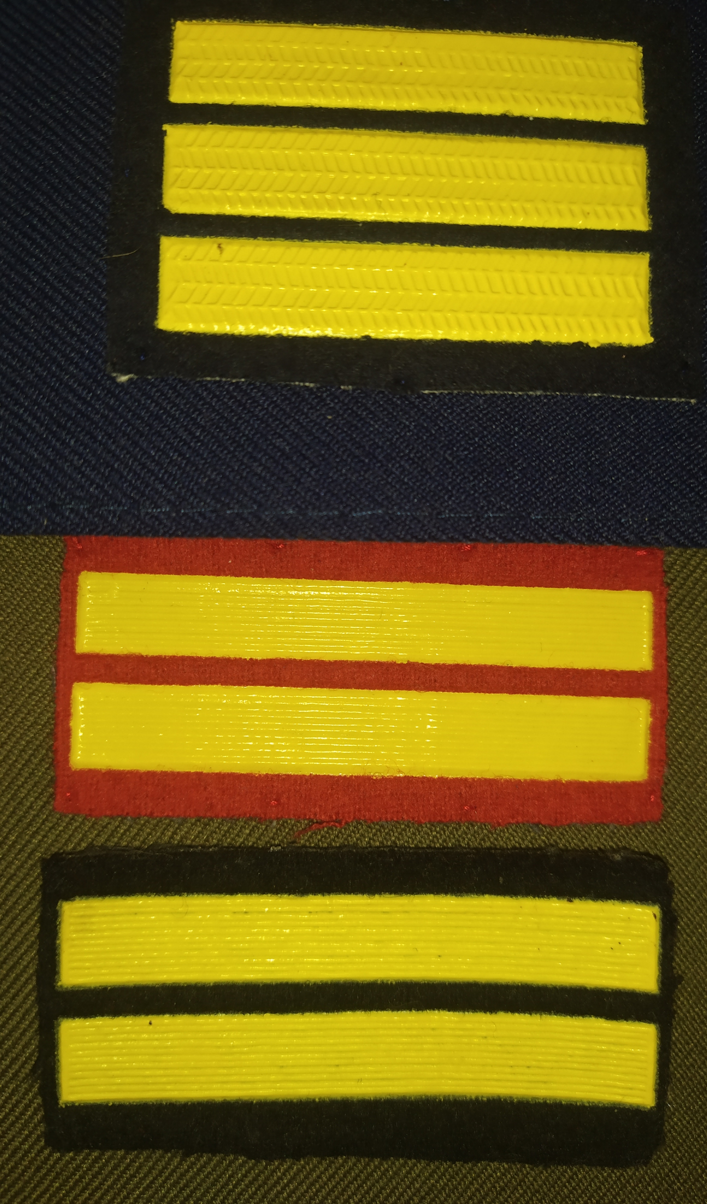 Очень похоже, но смущает именно "советское" изготовление. Технология сварки ПВХ пленки с сукном, пленка "дубовая", плотная, нашивку скручивает. Современные пластизолевые более легкие, рисунок полос четче, контуры очень ровные (без затека и облоя).