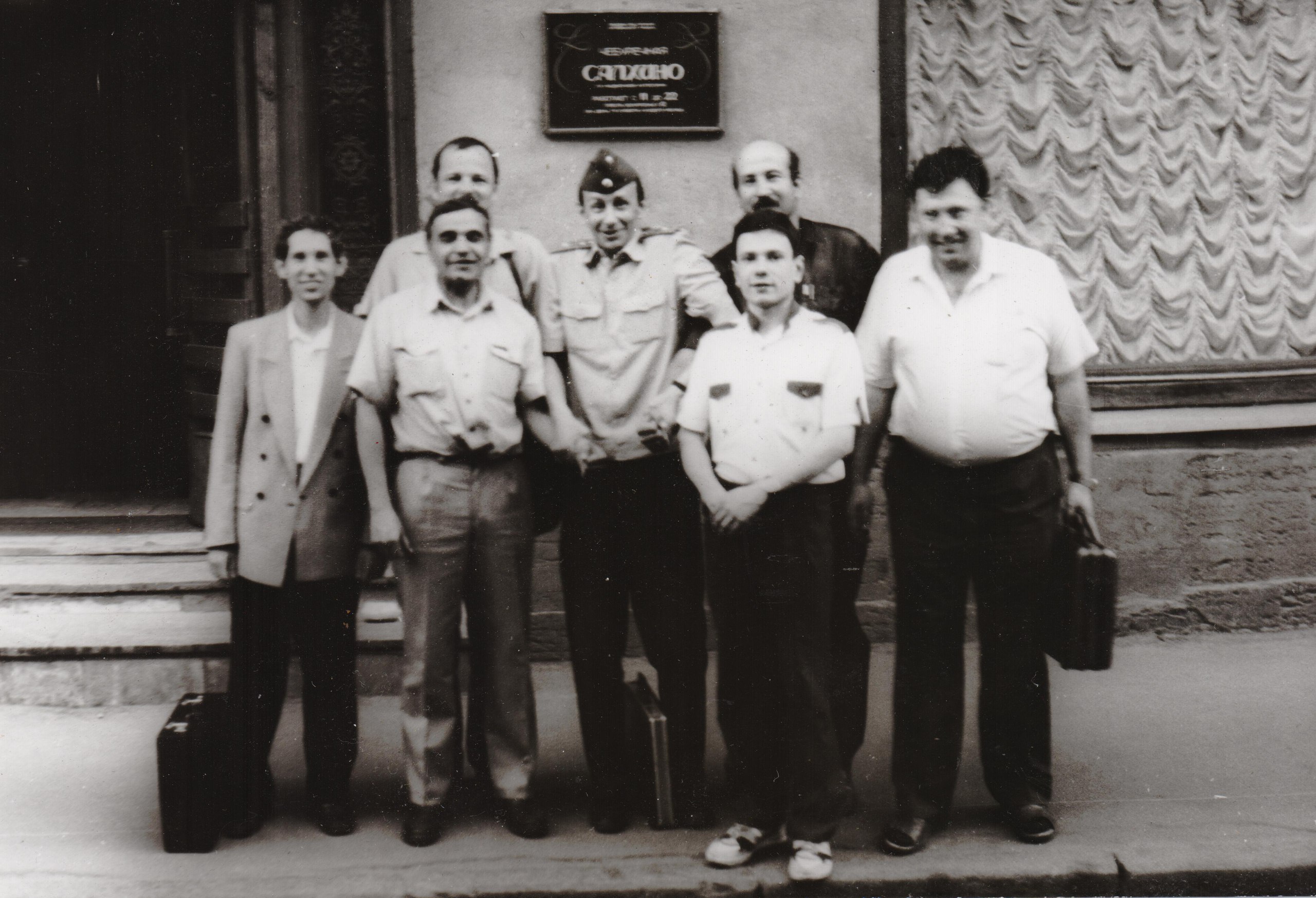 После выхода приказа 372 я получил обмундирование нового образца, но не сразу. Следующая фотография датируется 1995 годом, причем до мая, поскольку в мае 1995 года я уволился на пенсию. Найдете хоть один нарукавный знак?