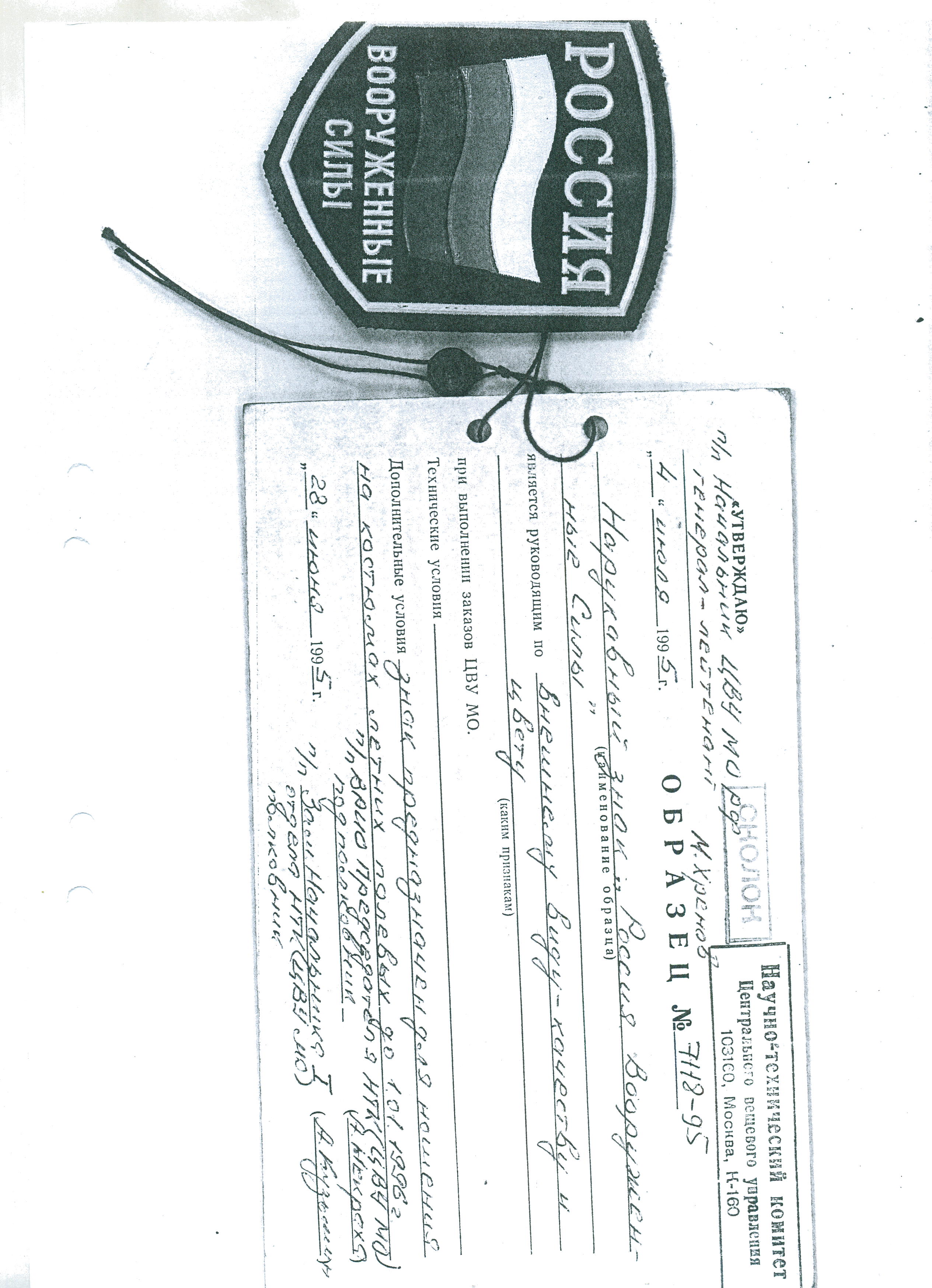 Фото в советской форме найду и выставлю. Что касается приведенной фотографии, то она датируется 1995 годом. Так как я уже тогда плотно интересовался униформой и носил все согласно снабжения, то как видите нарукавного знака я не получил. Соответственно он не выдавался.