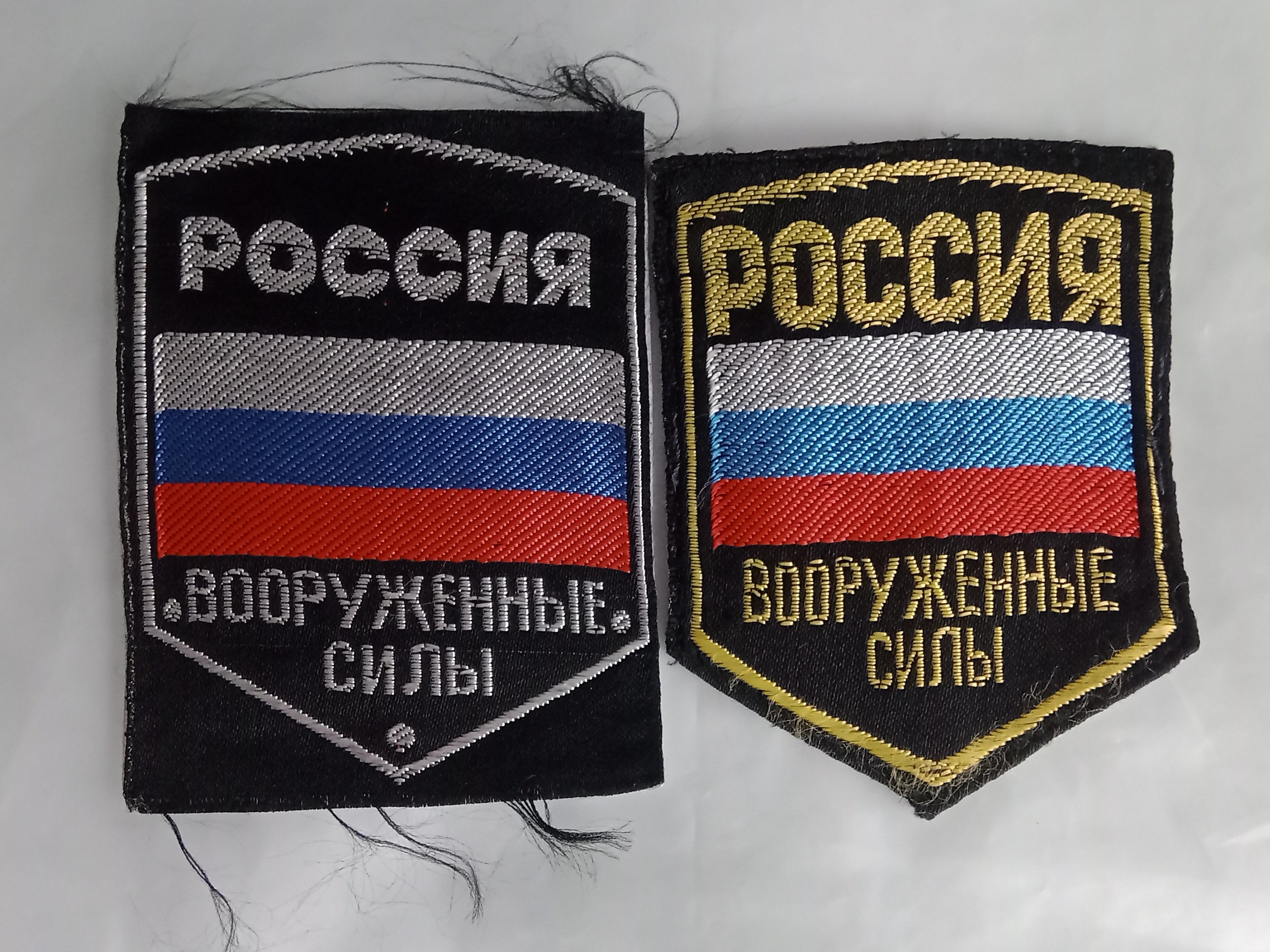 Кстати, стоит вспомнить и о тканых вариантах нарукавных знаков "Россия ...". В первых выдачах новой полевой формы (1993-94) они встречались уже пришитыми на рукав.