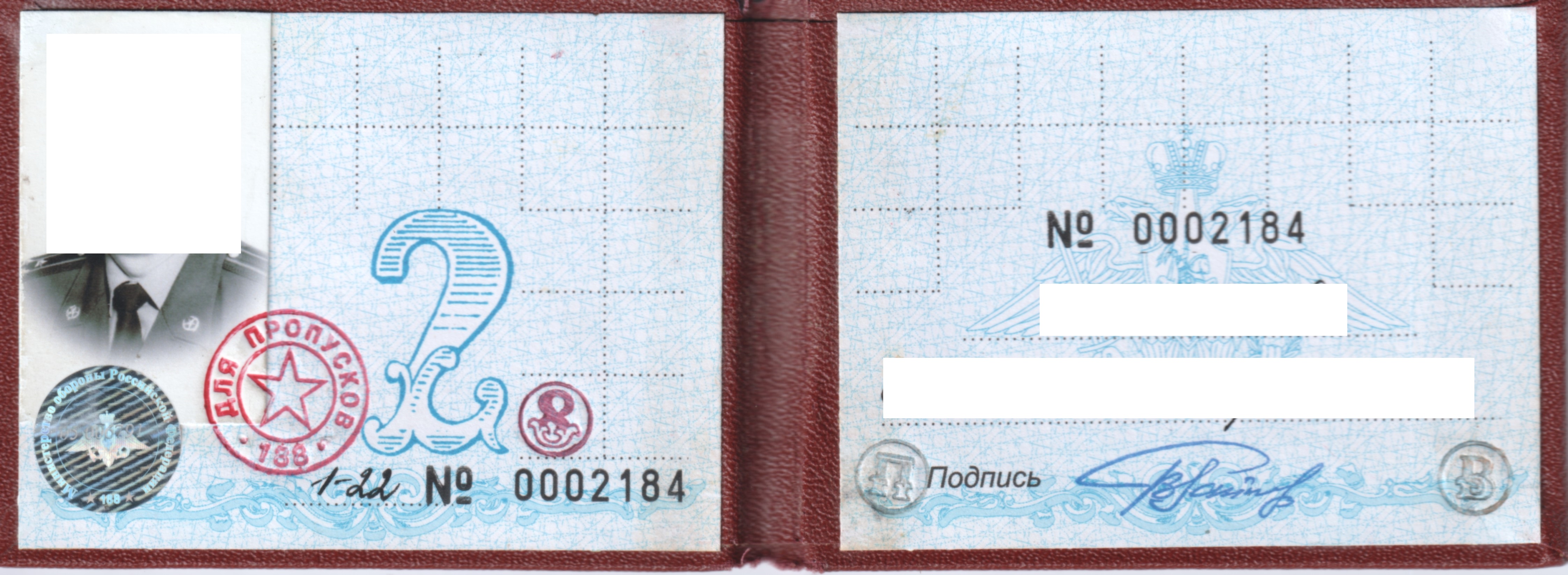 В моем пропуске, эти штампики обозначали допуски в другие дома ВМФ и МО. А так, этот пропуск точно такого же дизайна, что существовал ещё в начале 2000 г.