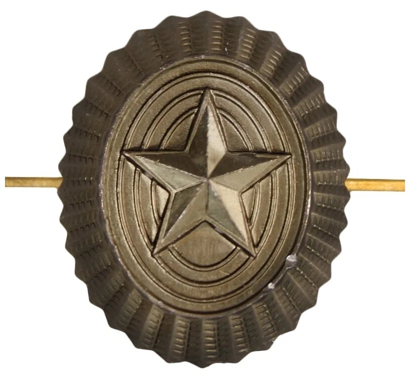 Спереди, посередине соединительного шва бортиков, размещается кокарда золотистого цвета.