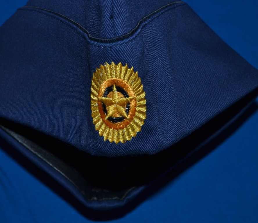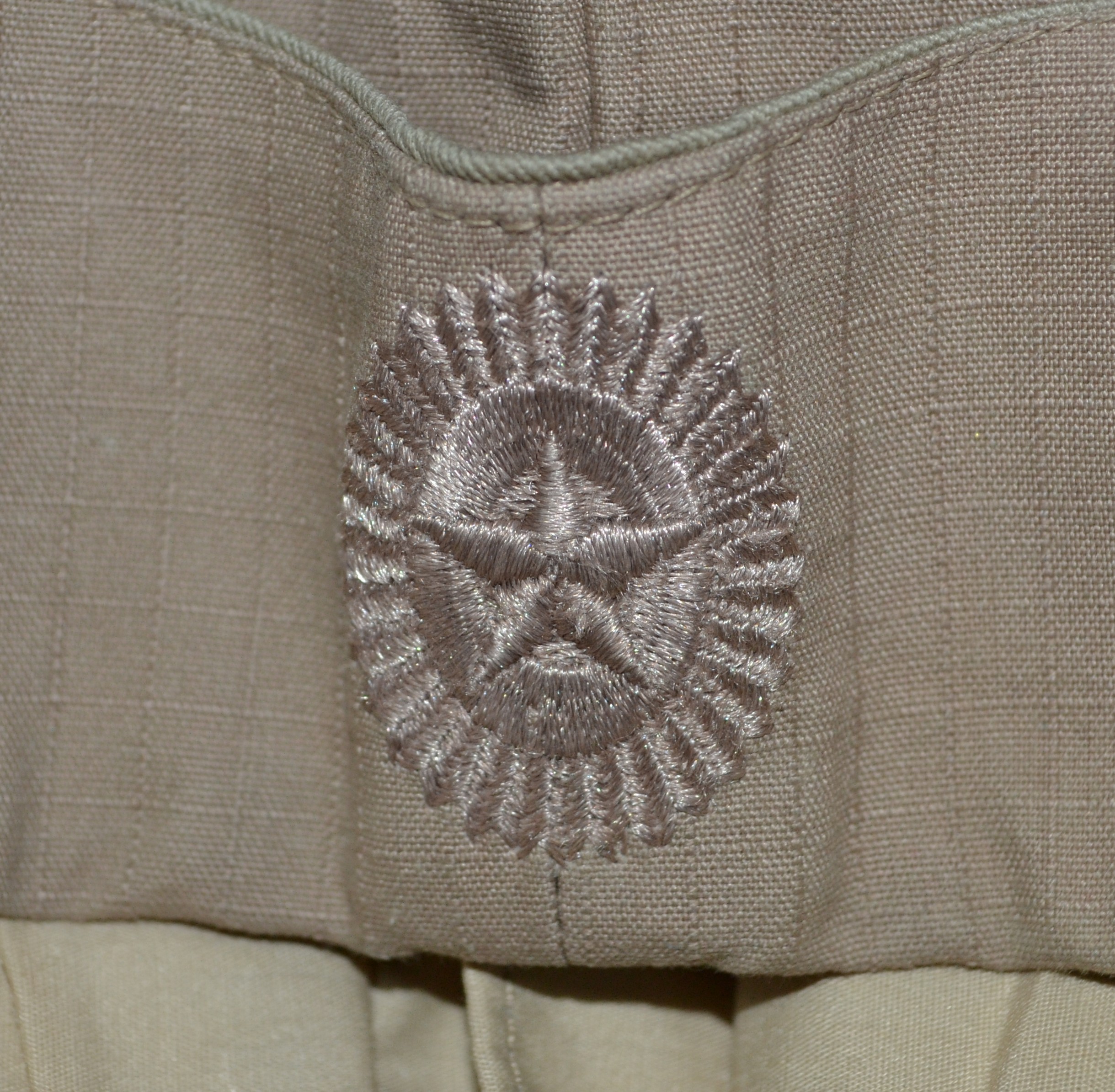 На лицевой стороне козырька и передней части головки размещена вышитая кокарда защитного цвета.