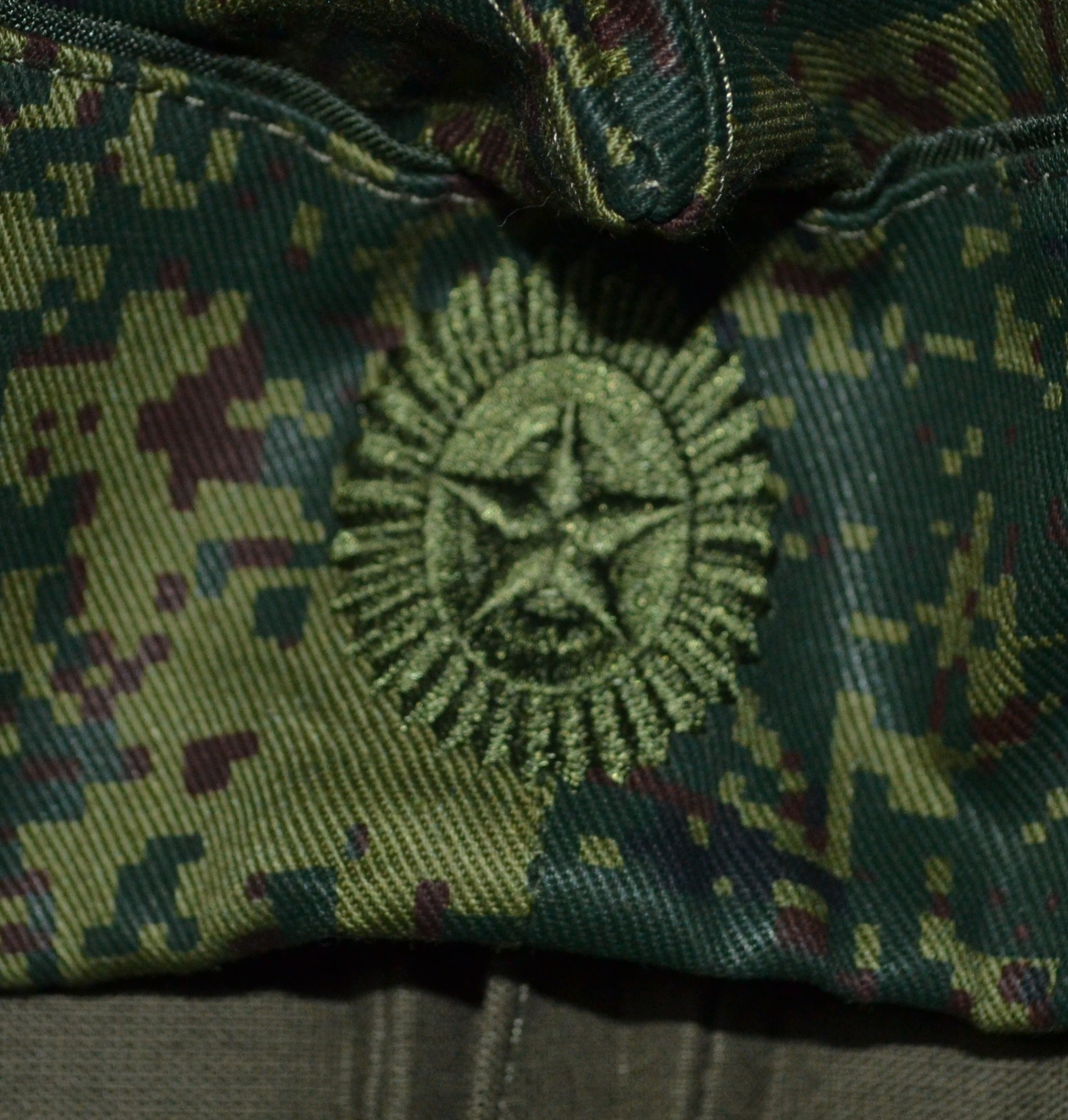 Фуражка летняя камуфлированной расцветки на подкладке состоит из донышка, стенок, козырька и околыша с вышитой кокардой защитного цвета.