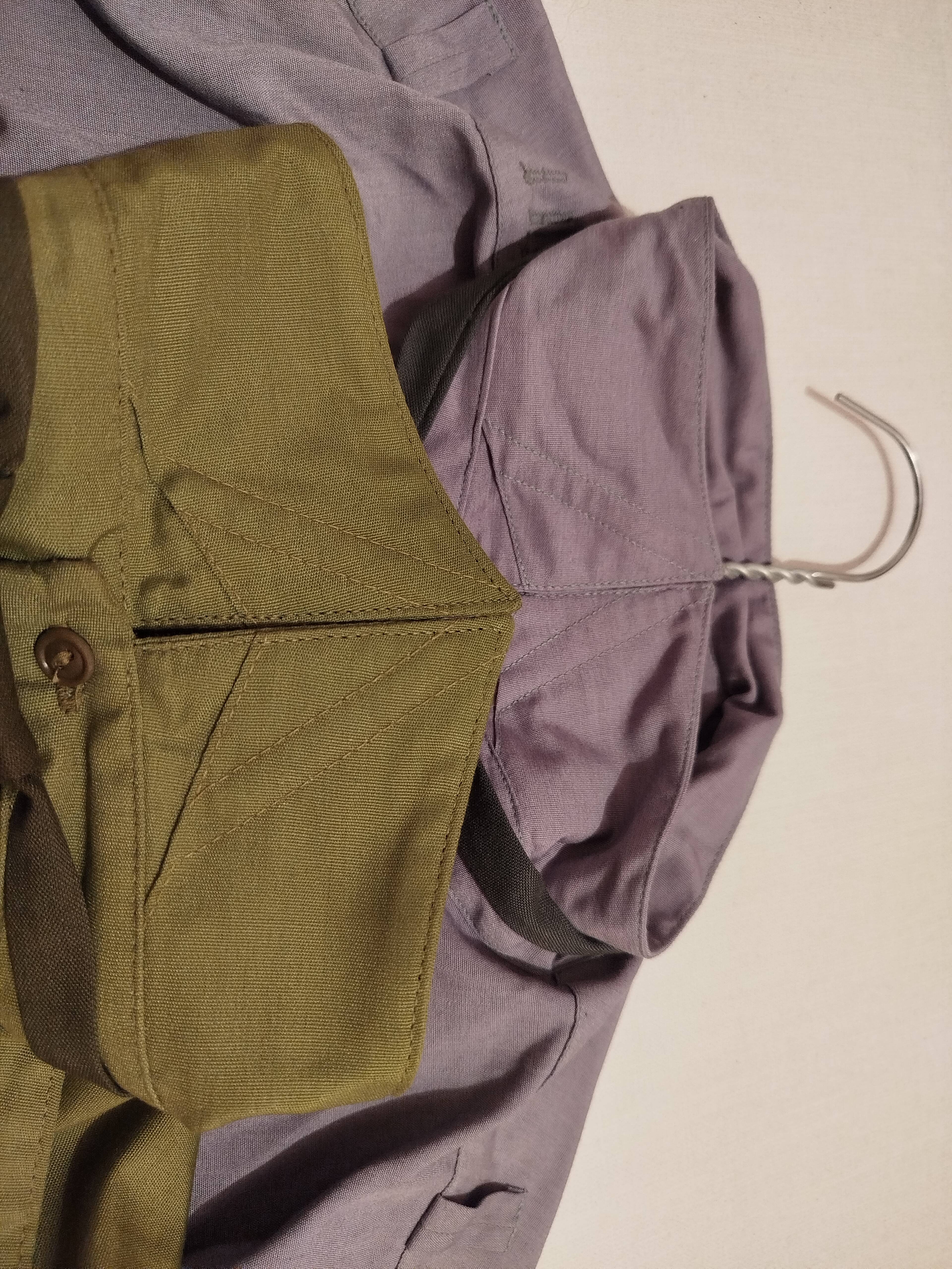 Кстати, нашел еще одно различие: на внутренней стороне воротника на одних рубашках есть характерный технологический шов ( заверт манжеты), а на других он отсутствует. Что это: особенность производства на фабрике или различия между офицерской и солдатской рубашками? На приведенных выше солдатских рубашках его нет.