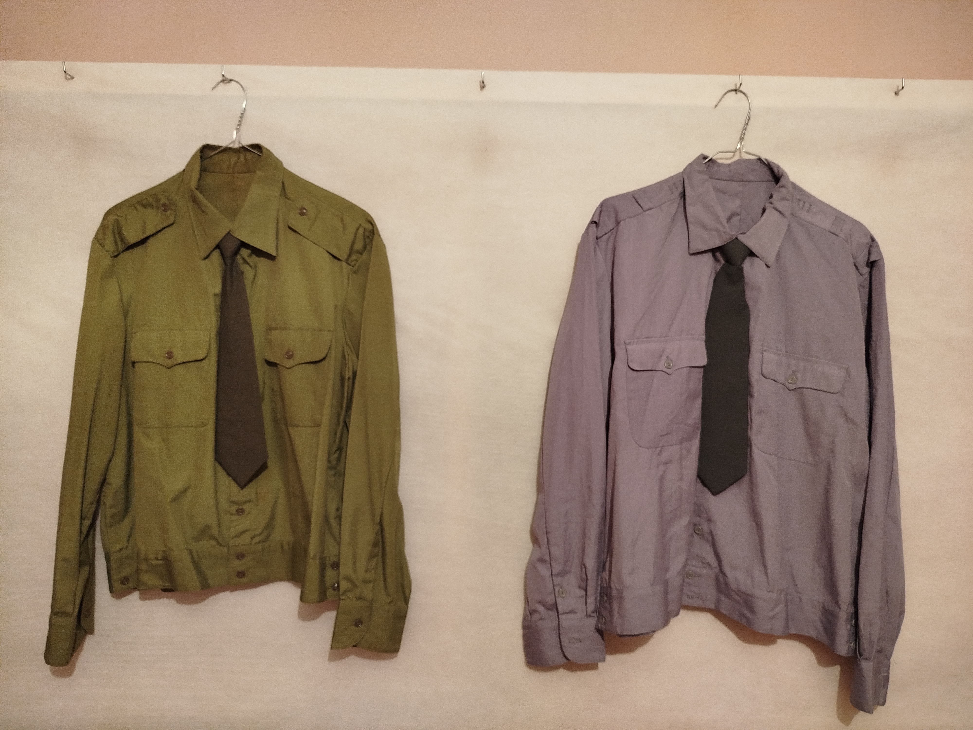 Далее, две офицерских рубашки, с капитанскими погонами ВСЧ - светло-зелёная, 70-х годов,