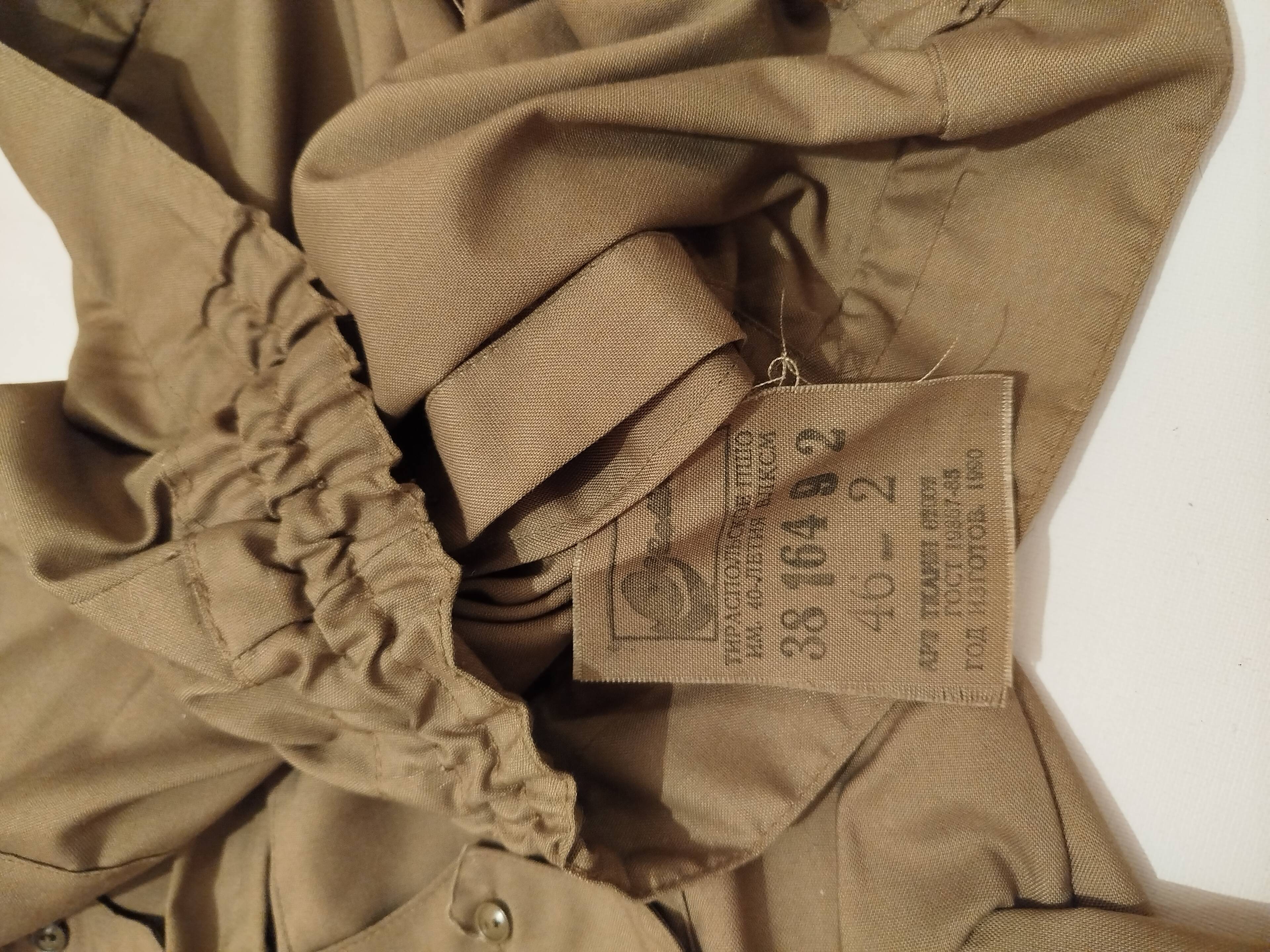 Коллеги! Я все таки ее нашел, рубашку с резинками на поясе. Оказалась в одном дембельском комплекте сержанта химических войск. Год изготовления 1990, ГОСТ 85. Размер 46, рост 2. Она офицерская или солдатская?