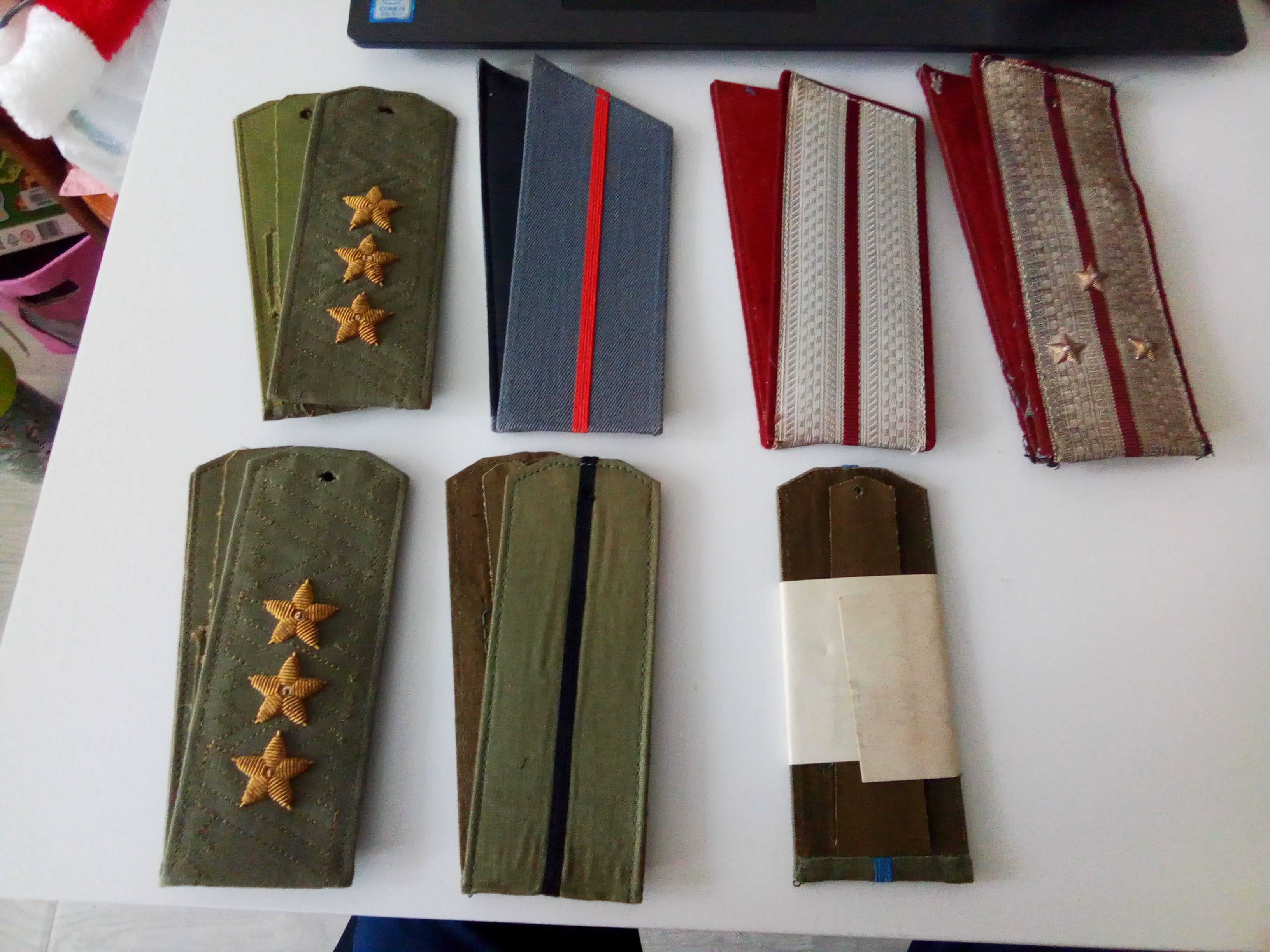 У меня много чего нет - например, погоны старших офицеров КГБ/кавалерии на белую рубашку, погоны мичманов и офицеров МЧПВ на белый китель обр.69, погоны старших офицеров МЧПВ на кремовую рубашку обр.69, не все парадные погоны обр.1957 на китель собрал.