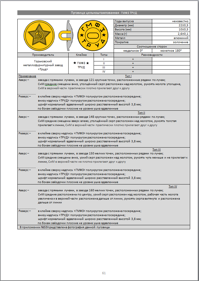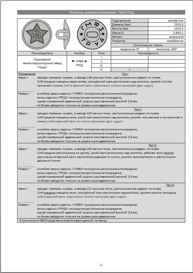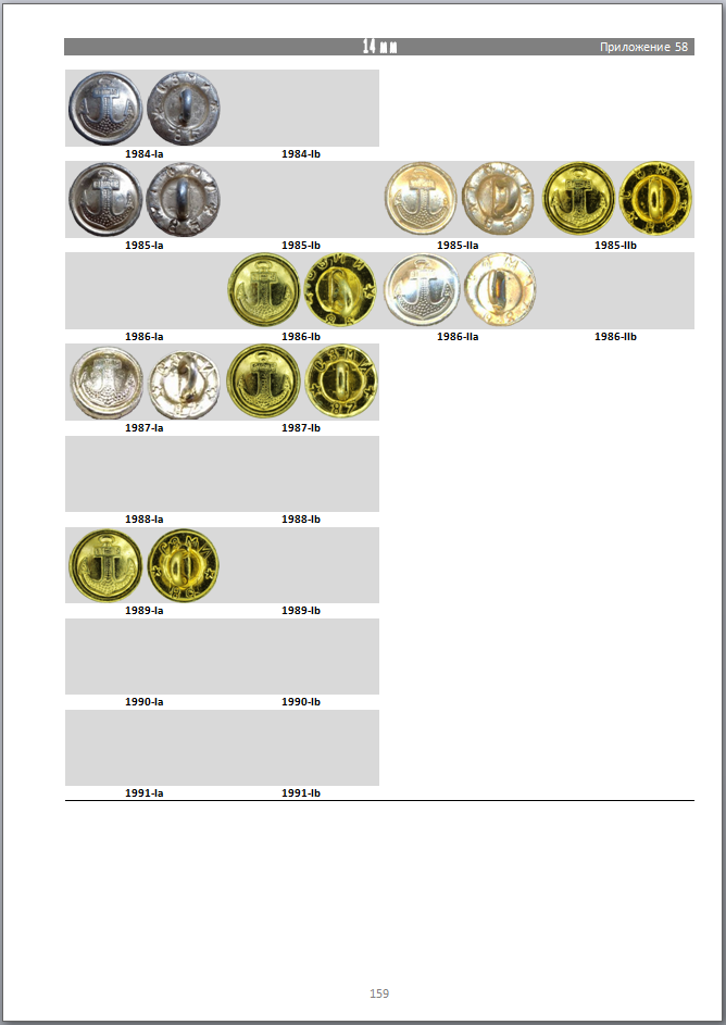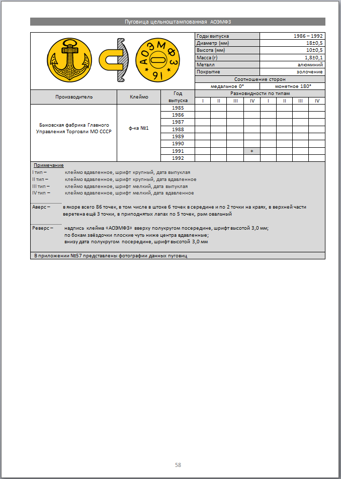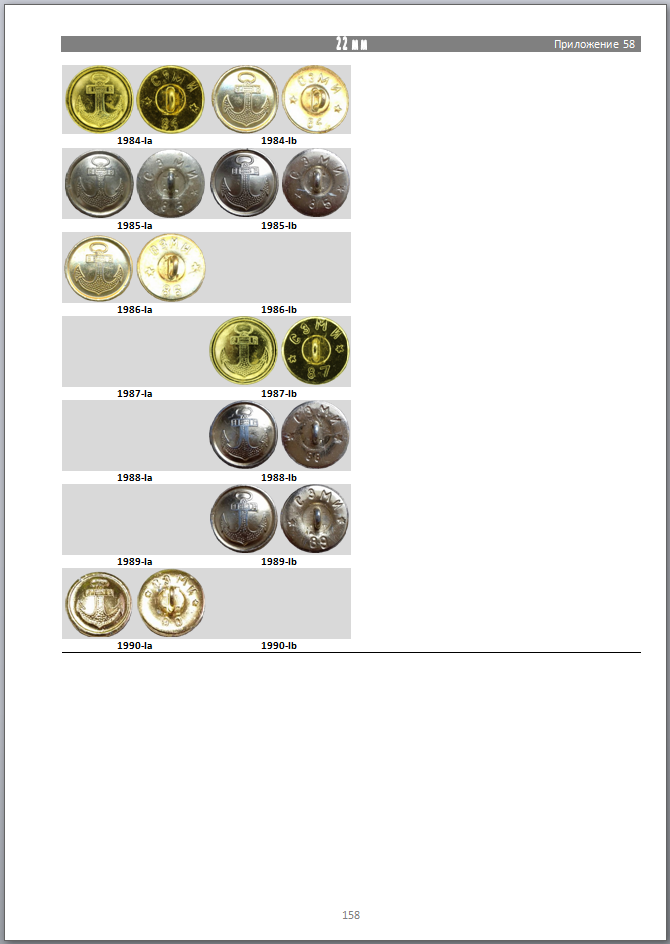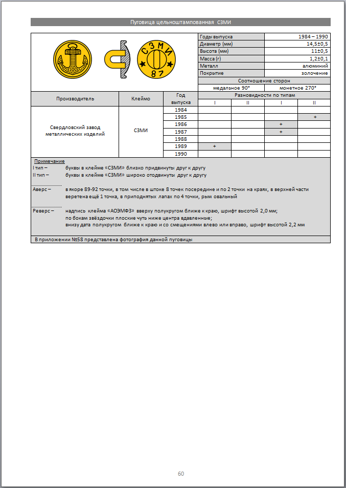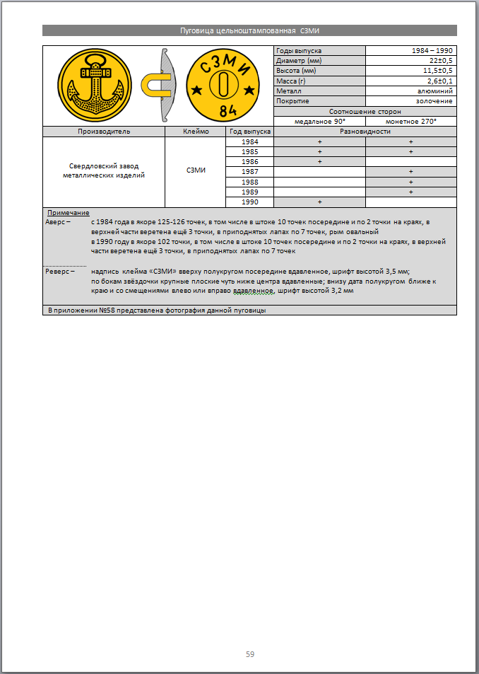 Шамиль исправьте в первой таблице. Вы по ошибке поставили картинку пуговицы со звездой, а надо с якорем. Скорее всего они будут все одного типа с цифрами и клеймом вдавленными в поверхность. Пуговица СЗМИ 1988 г. Аверс повернут относительно реверса на 270 градусов. Диаметр 22 мм, с якорем.