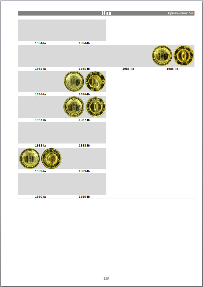 Взял период с 1984 по 1991 год. Возможно этот период расширится или сузится. Пока указал два типа. Если разновидностей не будет, то уберу второй тип. Своеобразное соотношение аверса и реверса - развороты на 90 и 270 градусов.