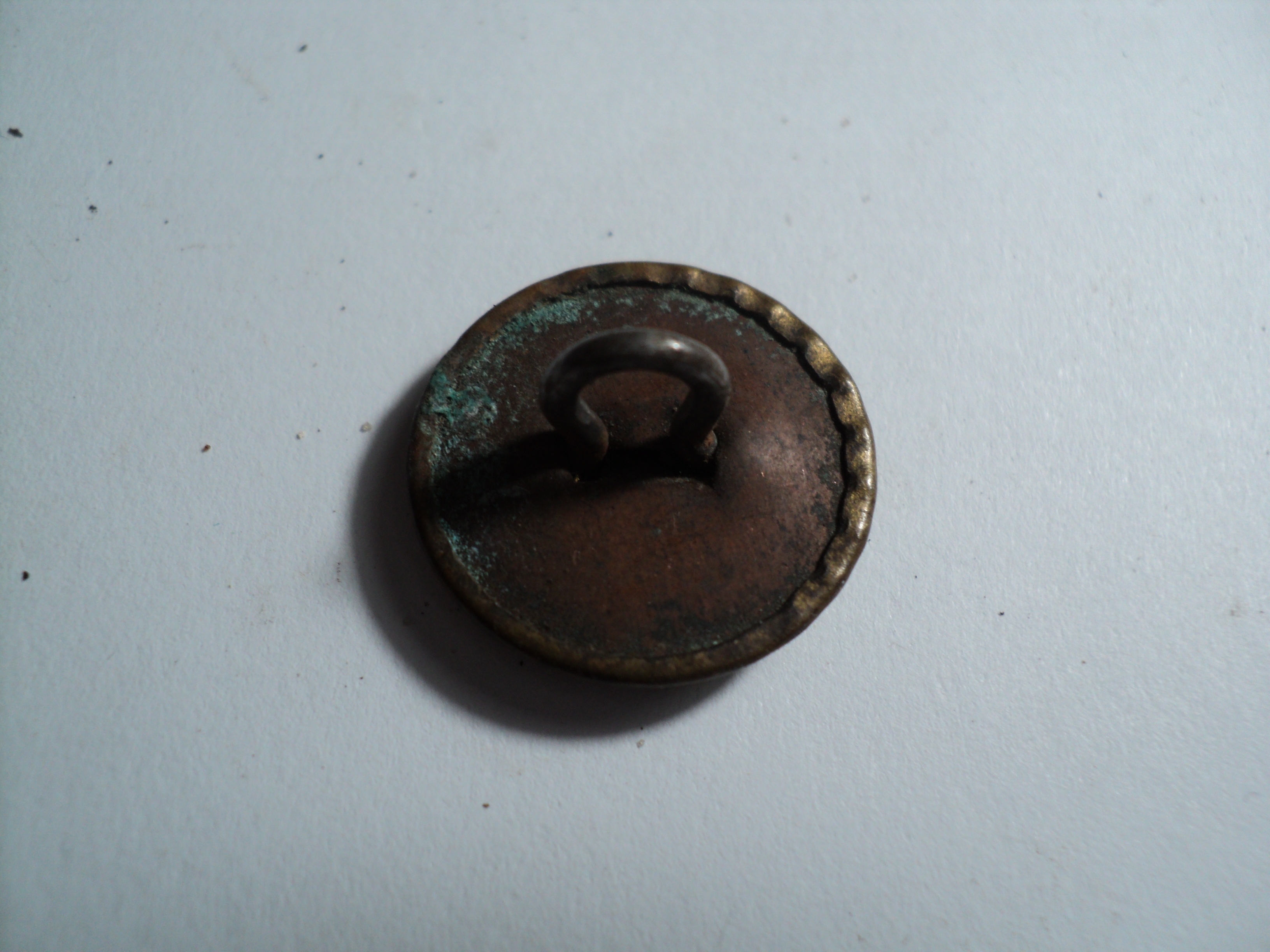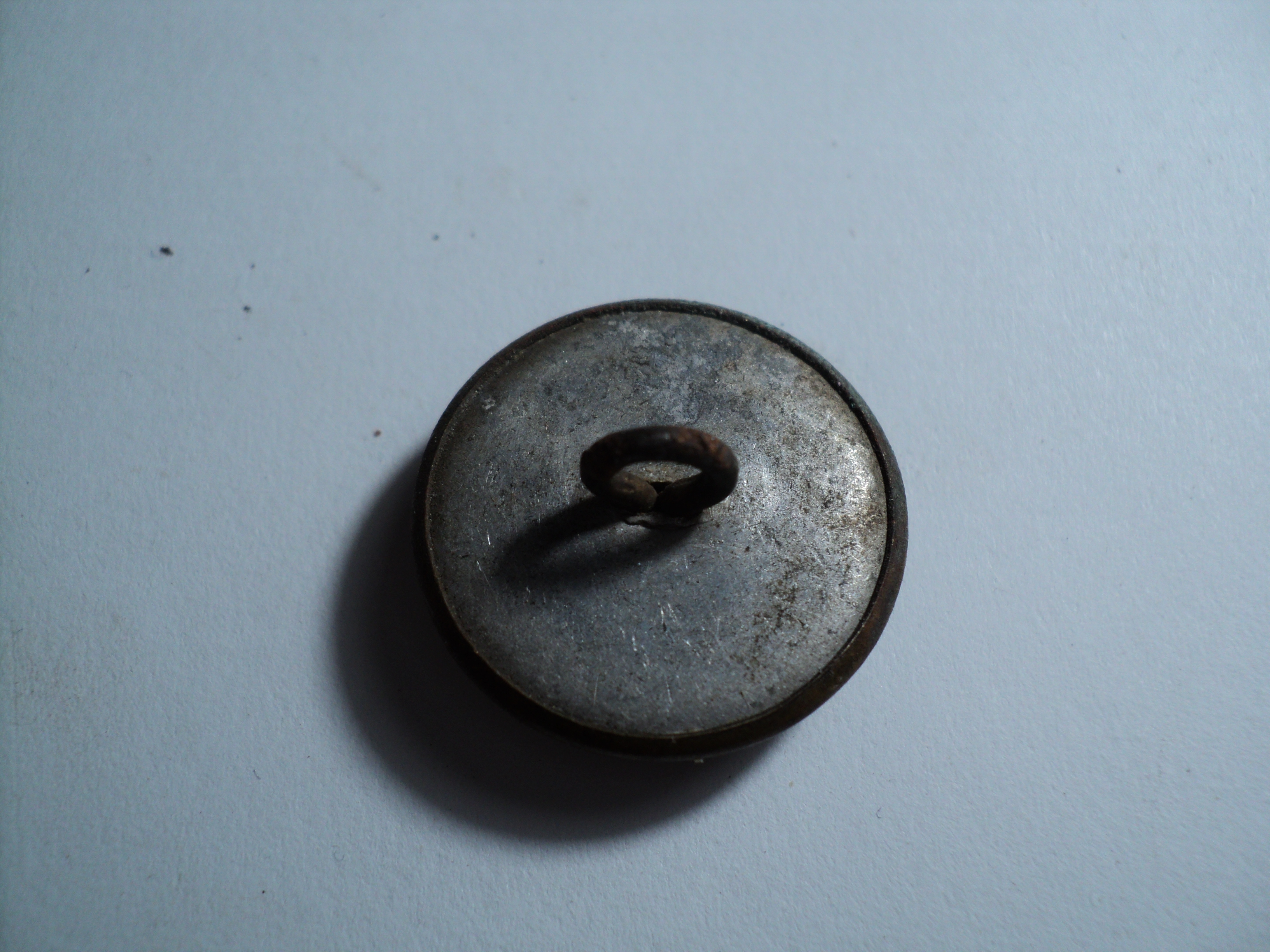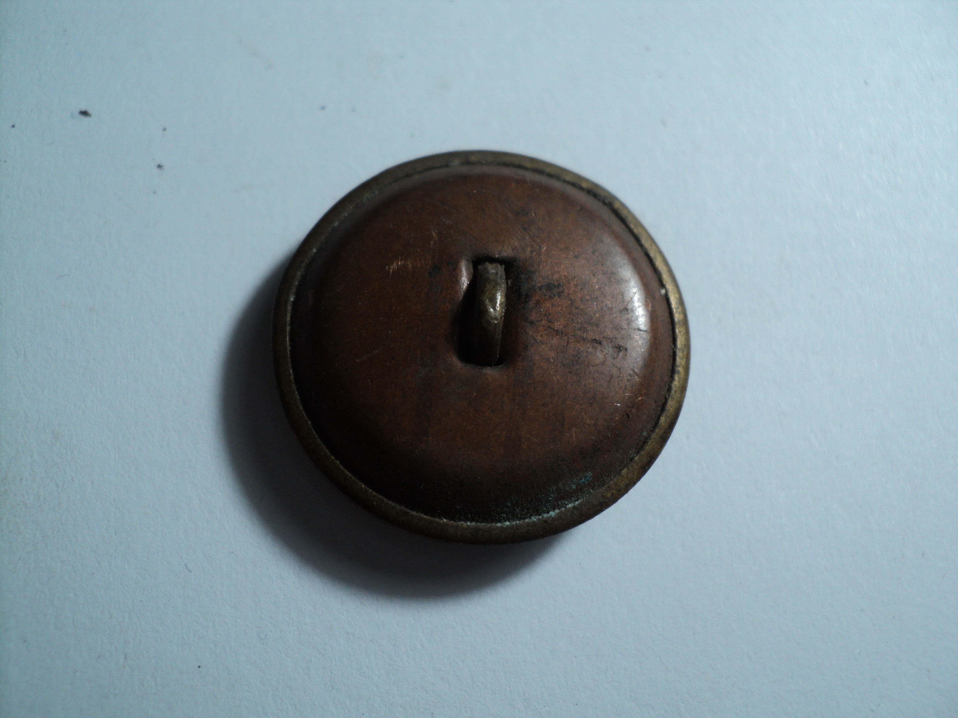 Хочу показать какие пуговицы будут у нас в конце Каталога по ленд-лизу. У меня два типа ушек в виде расширяющейся проушины (на фото) и в виде кольца, как и у предыдущих пуговиц ленд-лиза. Эти пуговицы по конструкции совсем простые. В плоскую круглую пластину вставляется ушко, не приваривается. Затем прессуется вокруг металлической основы пластическая масса. Конструкция вполне крепкая. Эти пуговицы скорее всего шли на гимнастёрки.