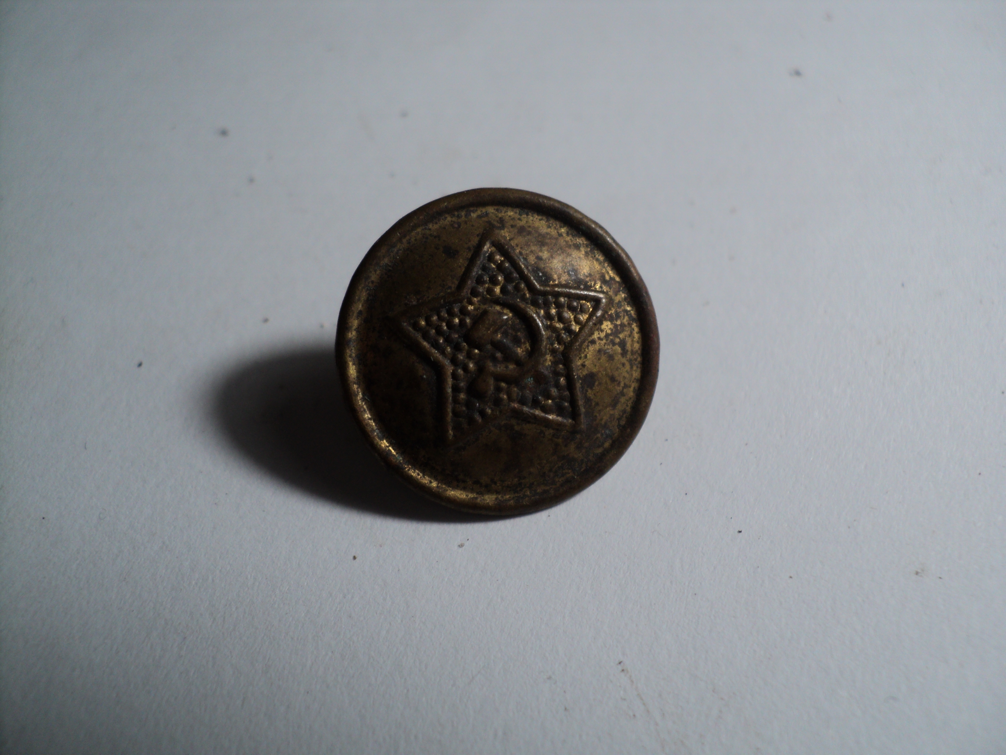 Ленд-лиз? Репарации? Форма звезды какая-то нехарактерная для отечественных пуговиц. Поддон алюминиевый.