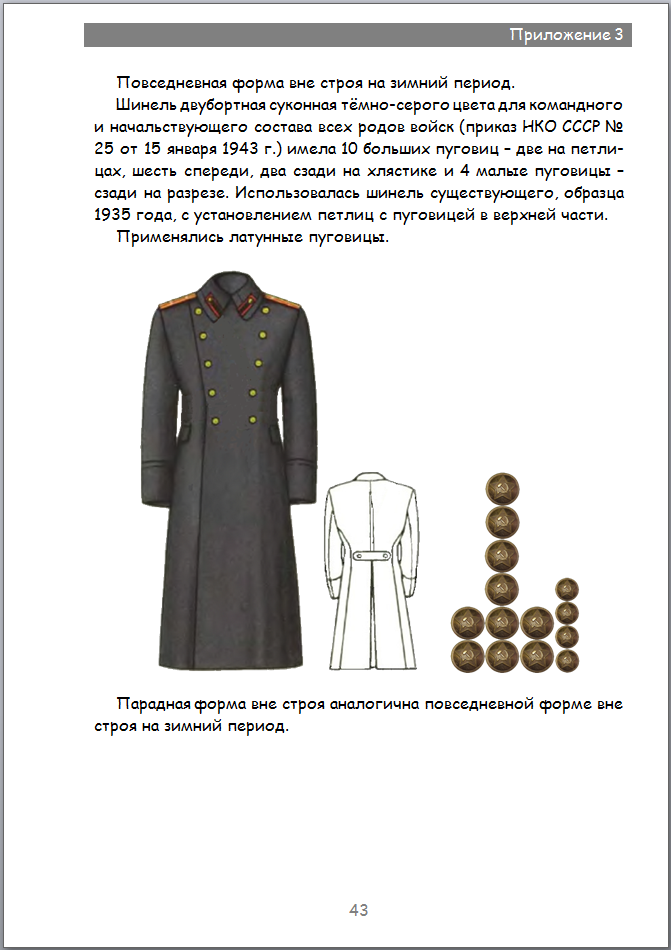 Представляю Приложение 3 к Разделу "Пуговицы ленд-лиза Красной Армии..." нашего Каталога. Это только форма данного Приложения. На самом деле генеральское обмундирование не будет показано здесь, так как по ленд-лизу генеральских пуговиц с гербом не было замечено. На данной странице представлено обмундирование (спереди и сзади), по какому приказу и когда оно введено и количество положенных пуговиц. Я думаю по расположению и размерам пуговиц можно определить куда и какие идут.