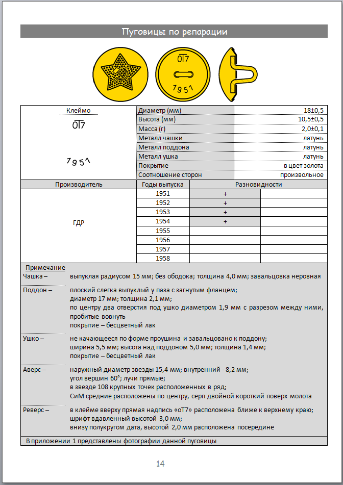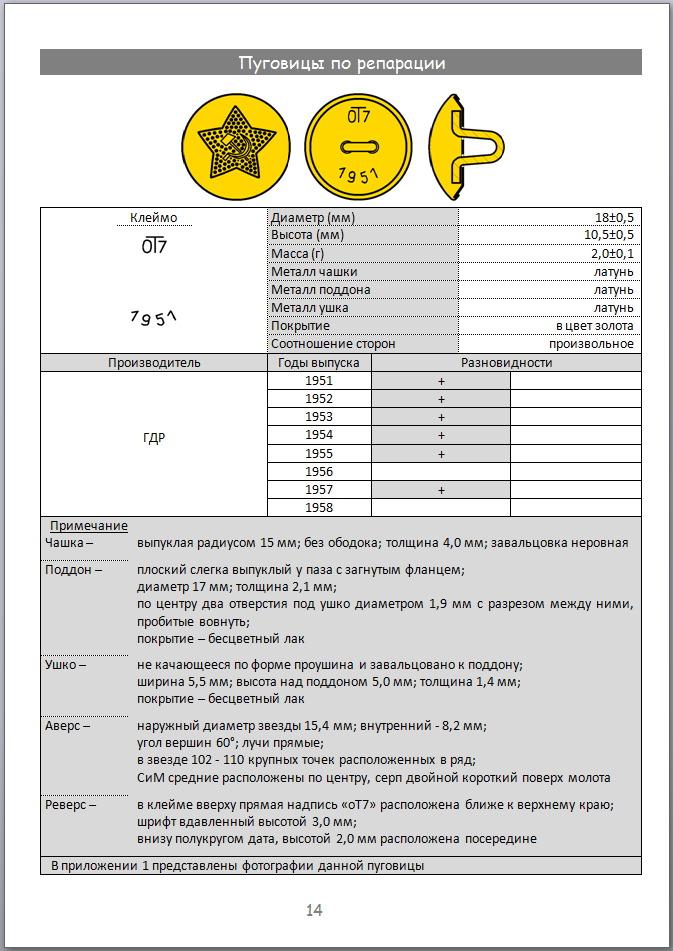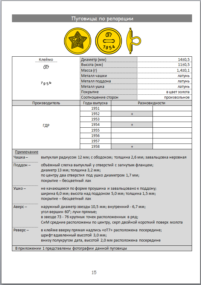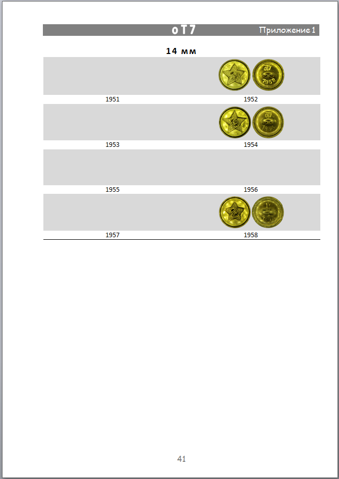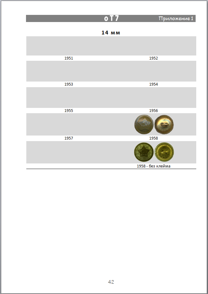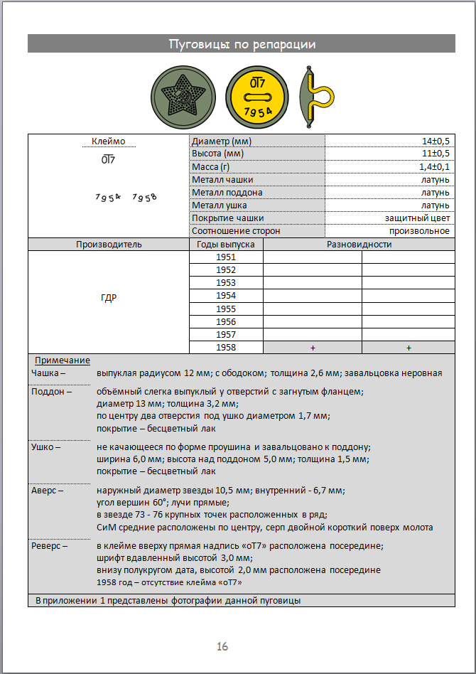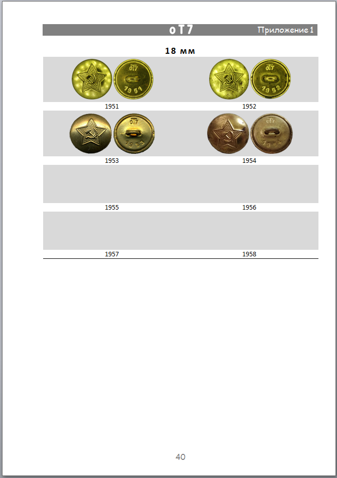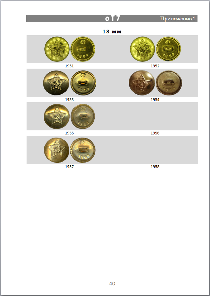 Даниил! Спасибо за информацию. Значит есть возможность найти погонные пуговицы диаметром 18 мм с клеймом оТ7 и последнего года выпуска (1958) данного предприятия. Поэтому в таблицах пока не буду убирать пустые клетки.