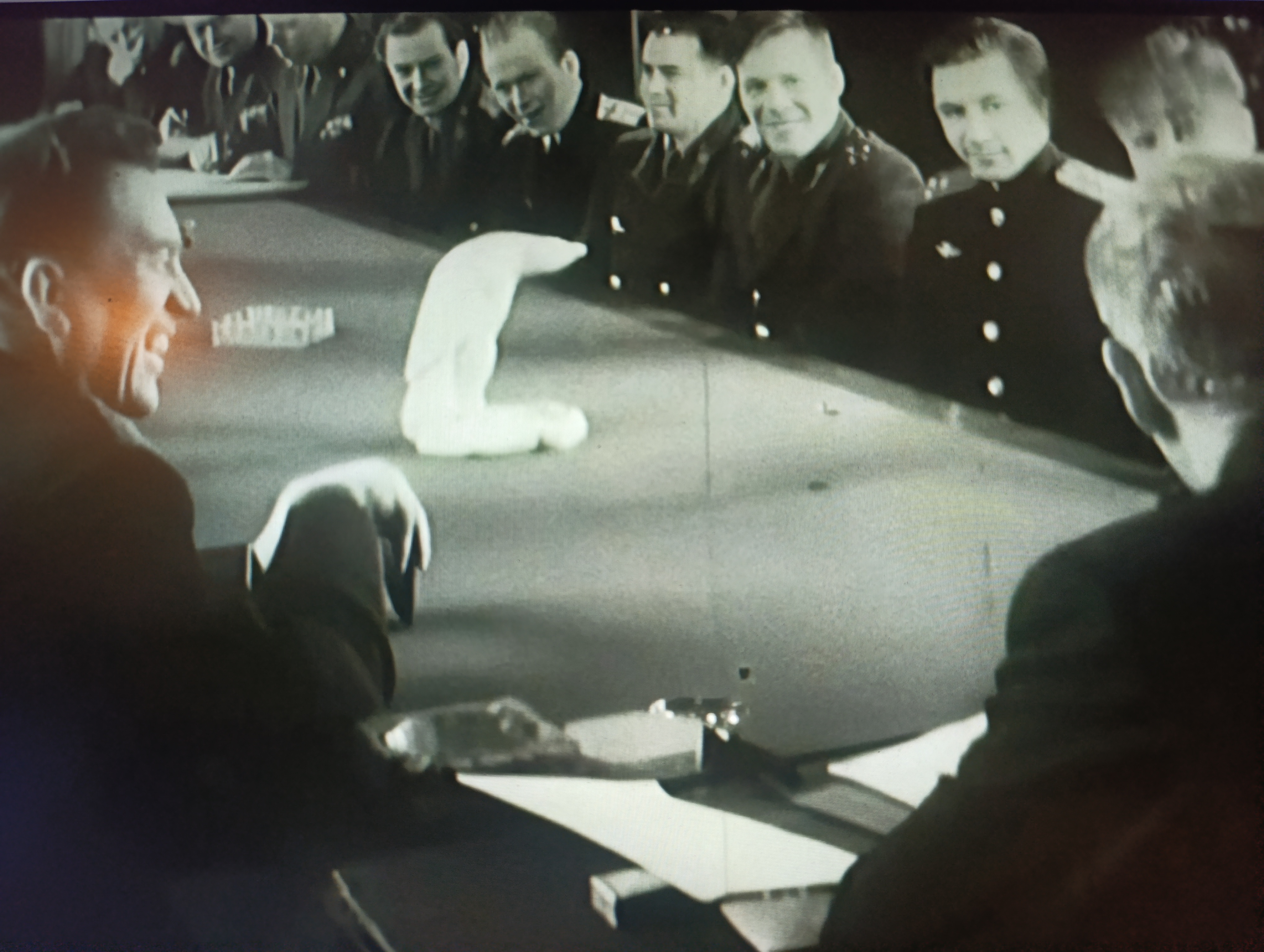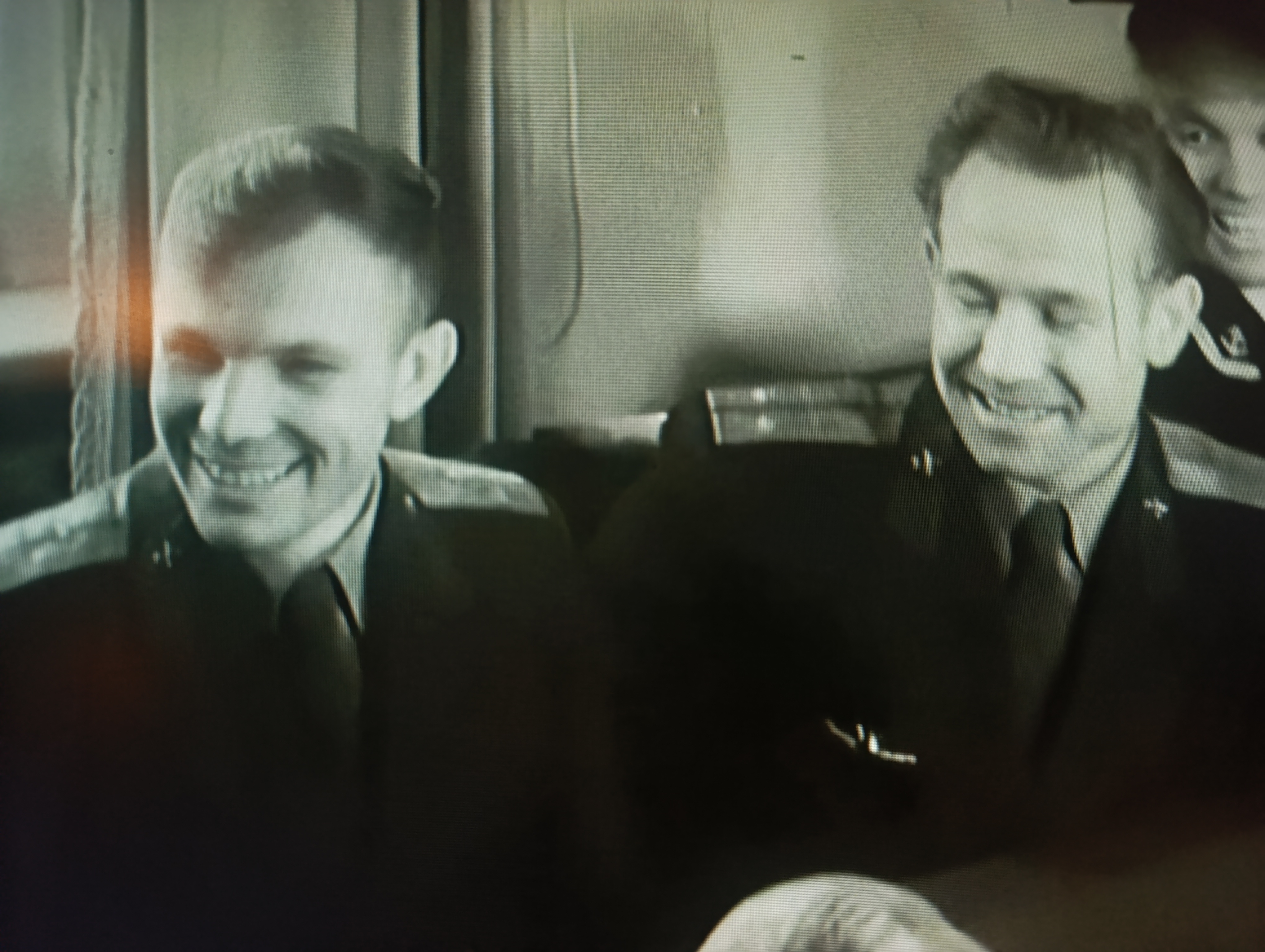 Чтобы добить этот вопрос окончательно и доказать свою правоту, привожу две фотографии из киноплёнки, на которой первая встреча будущих космонавтов "гагаринского набора" с Главкомом ВВС Главным маршалом авиации К.А.Вершининым. На них видно, что в марте 1960 г. в форме образца 1955 г. ходило ещё много людей.