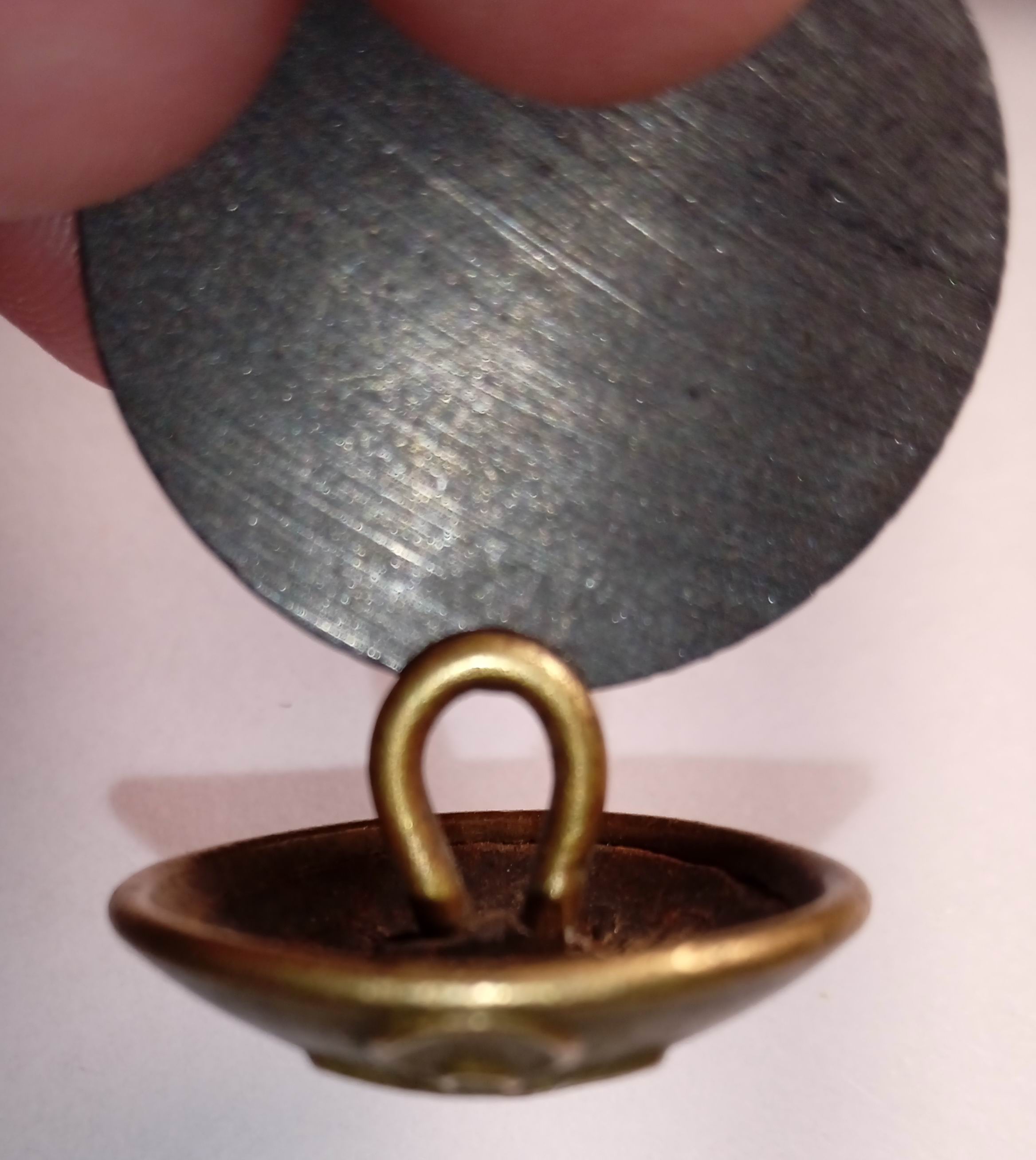 Алексей! Спасибо за фото. Внес в нашу базу. На Вашей пуговице поддон также магнитится? Похоже поддон сделан из тонкой жести. Как Вы думаете, каким способом крепится ушко к поддону?