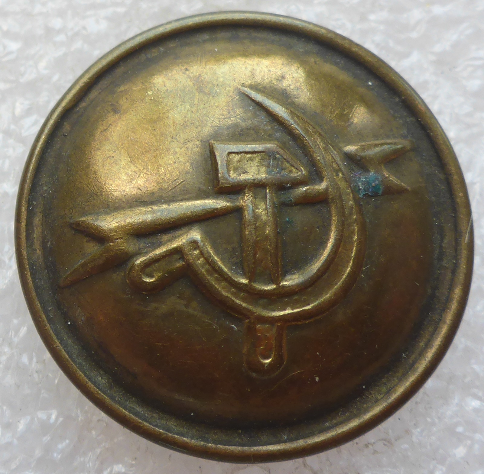 BENAS! Спасибо за фото. Значит фабрика "СЛАВА" делала и такие пуговицы. Весьма оригинальная, особенно ушко. Размер примерно 16 - 18 мм. Но, мне кажется, эта пуговица относится к торговому флоту. Пусть коллеги опровергнут или подтвердят. Англичанам простительно, когда они делали пуговицы по ленд-лизу такого типа.