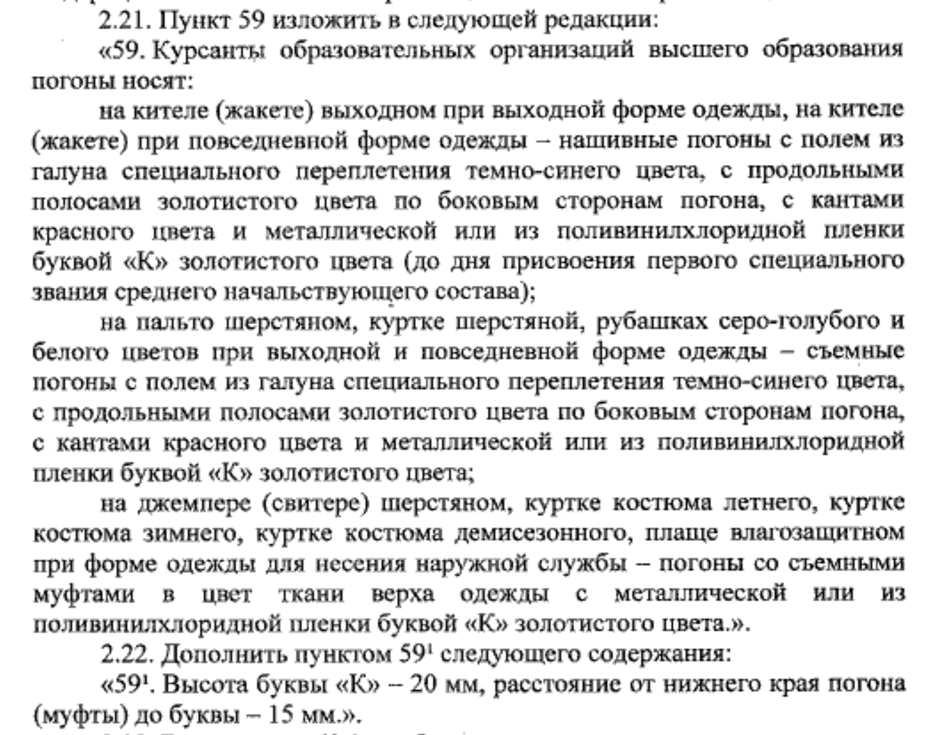 «59. Курсанты образовательных организаций высшего образования погоны носят: