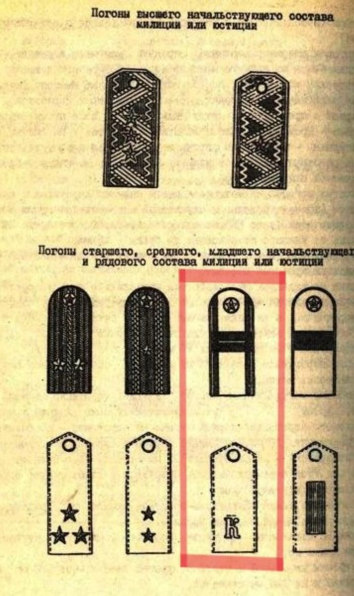 "На погонах золотистого цвета размещены звезды с кантами красного (для милиции) и серо - голубого (для юстиции) цвета";