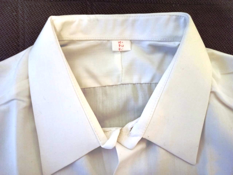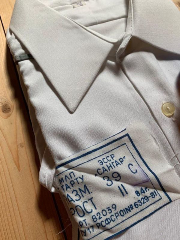 Вывод: рубашка парадная, пошитая по ТУ 17 РСФСР 01-6329-81 (белая без пояса, накладных карманов и креплений для погон), перешита в рубашку по ГОСТ 19867-74 (с поясом, креплением для погон, за исключением накладных карманов).
