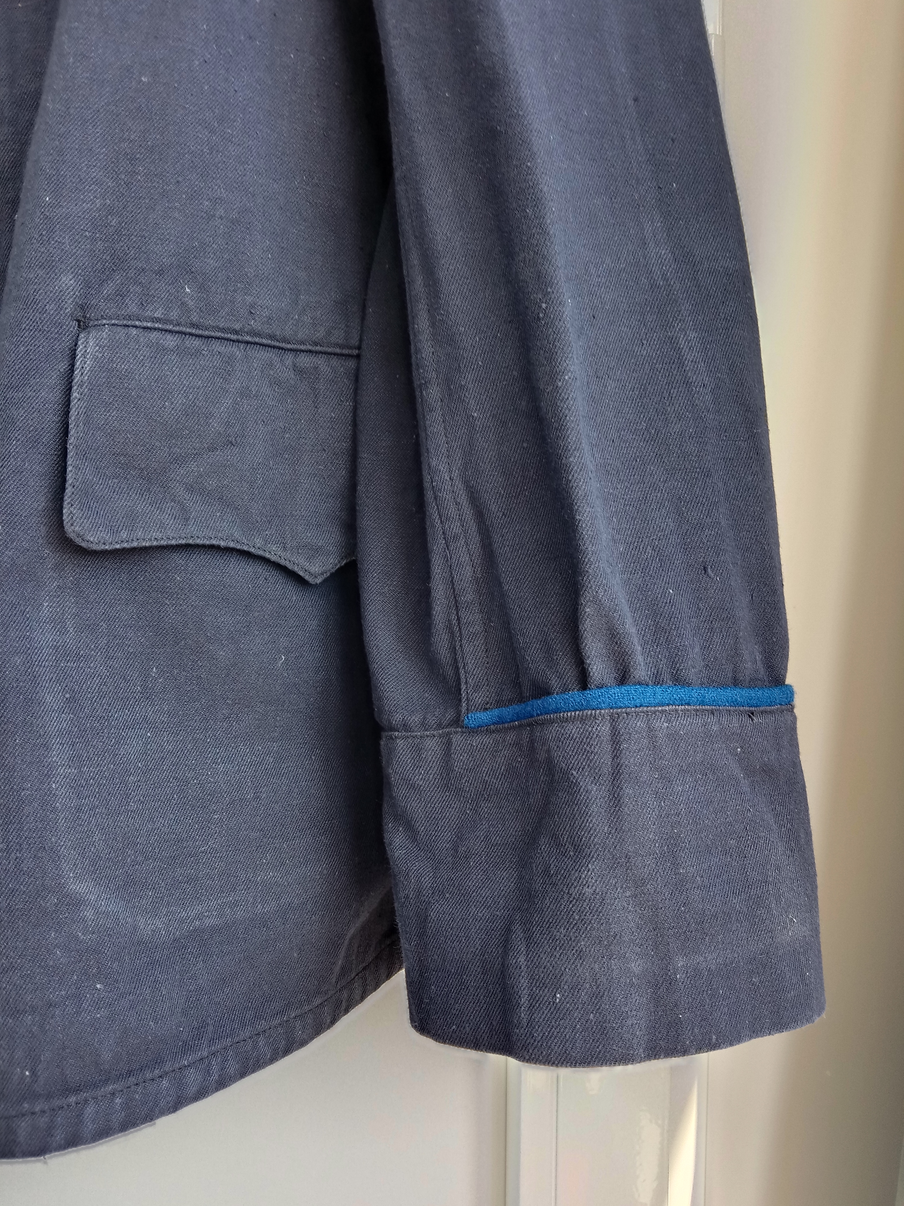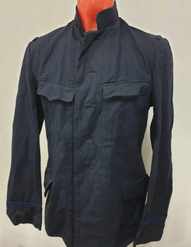 Чисто по виду - обычный флотский (военный) тёмно-синий китель, на который кто-то пришил голубые канты.