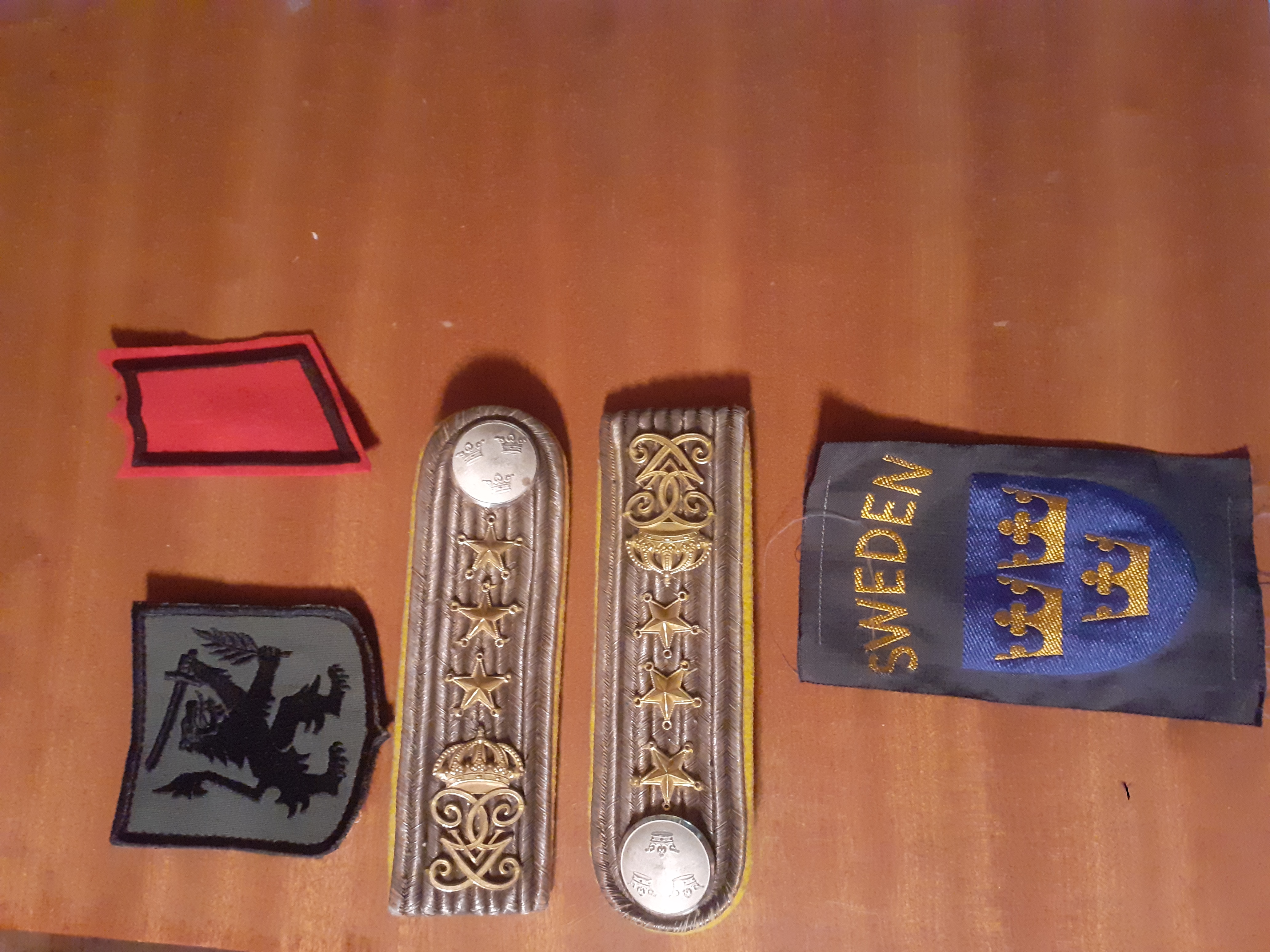 Привет, надебсь не ошибился разделом. Недавно друг был в Швеции. Привез мне как сувенир вот такие погоны и знаки. Подскажите пожалуйста по принадлежнлсти. Спасибо!