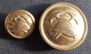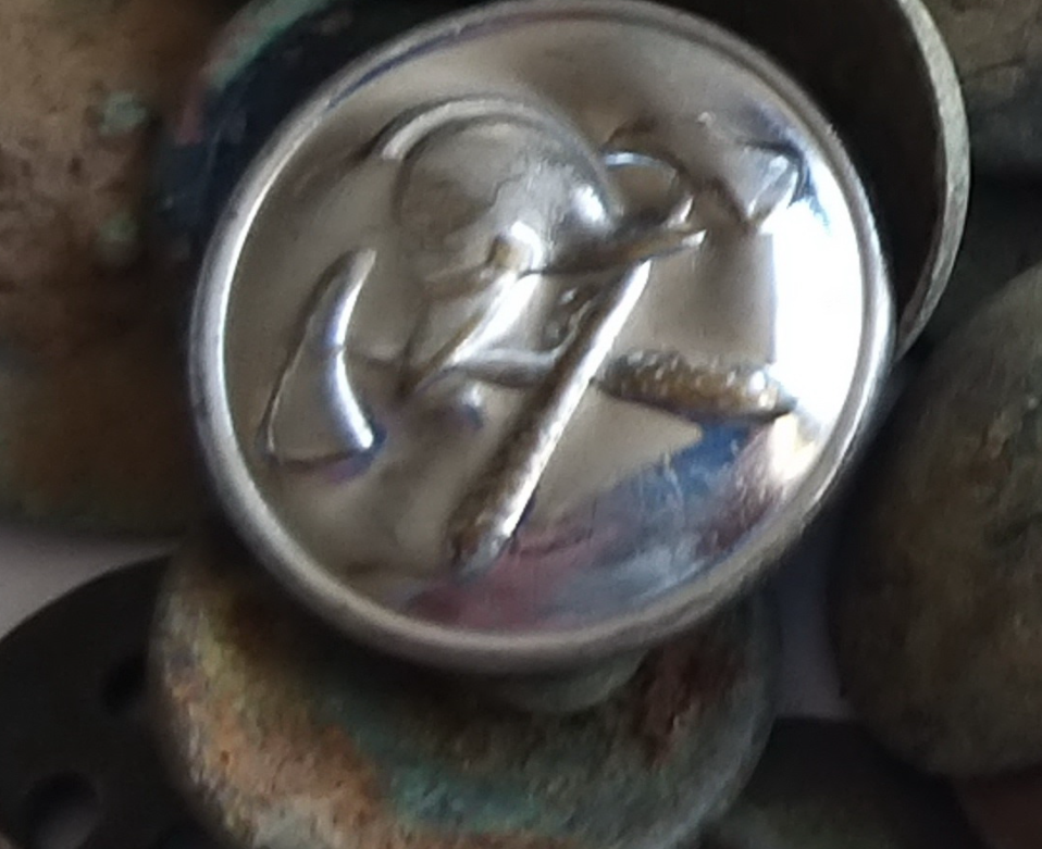 Вторая пуговица слева направо- есть подобные, с большой каской, и ещё такая же, но с огромной каской, фото не под рукой