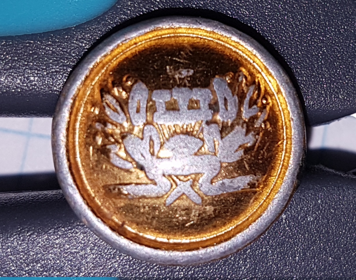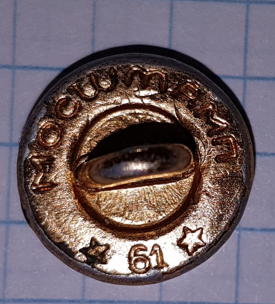 Всем здоровья. Оказалась у меня такая вот пуговка. Ни на какую из представленных на сайте не похожа. На одной стороне что-то похожее на герб. На другой написано МОСШТАМП 61. Может, кто заинтересуется узнать, что же это за пуговица. Не продаю и не меняю. Дорога как память. Досталась от бабушки, которая всю жизнь работала швеёй. Может, с этой профессией и связана пуговица?