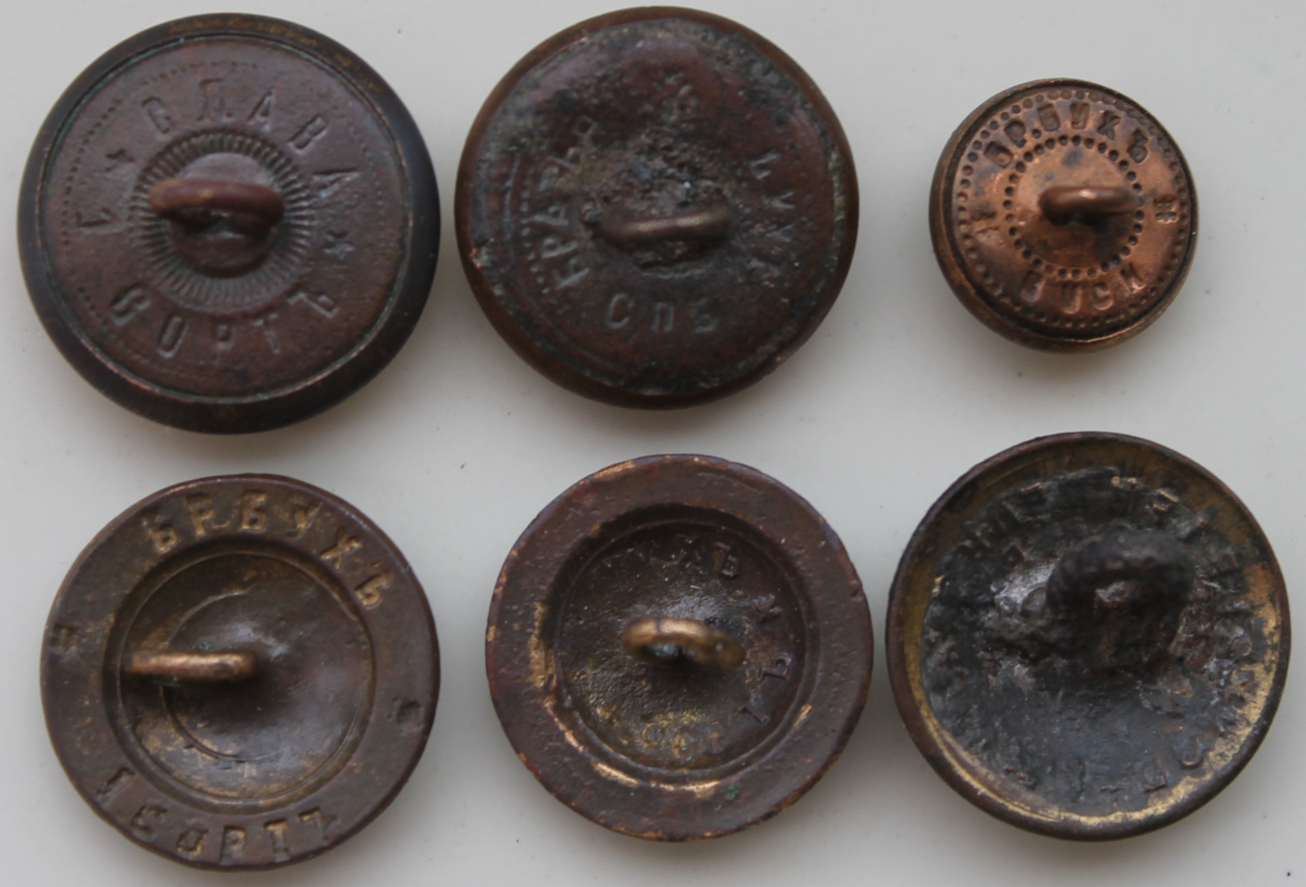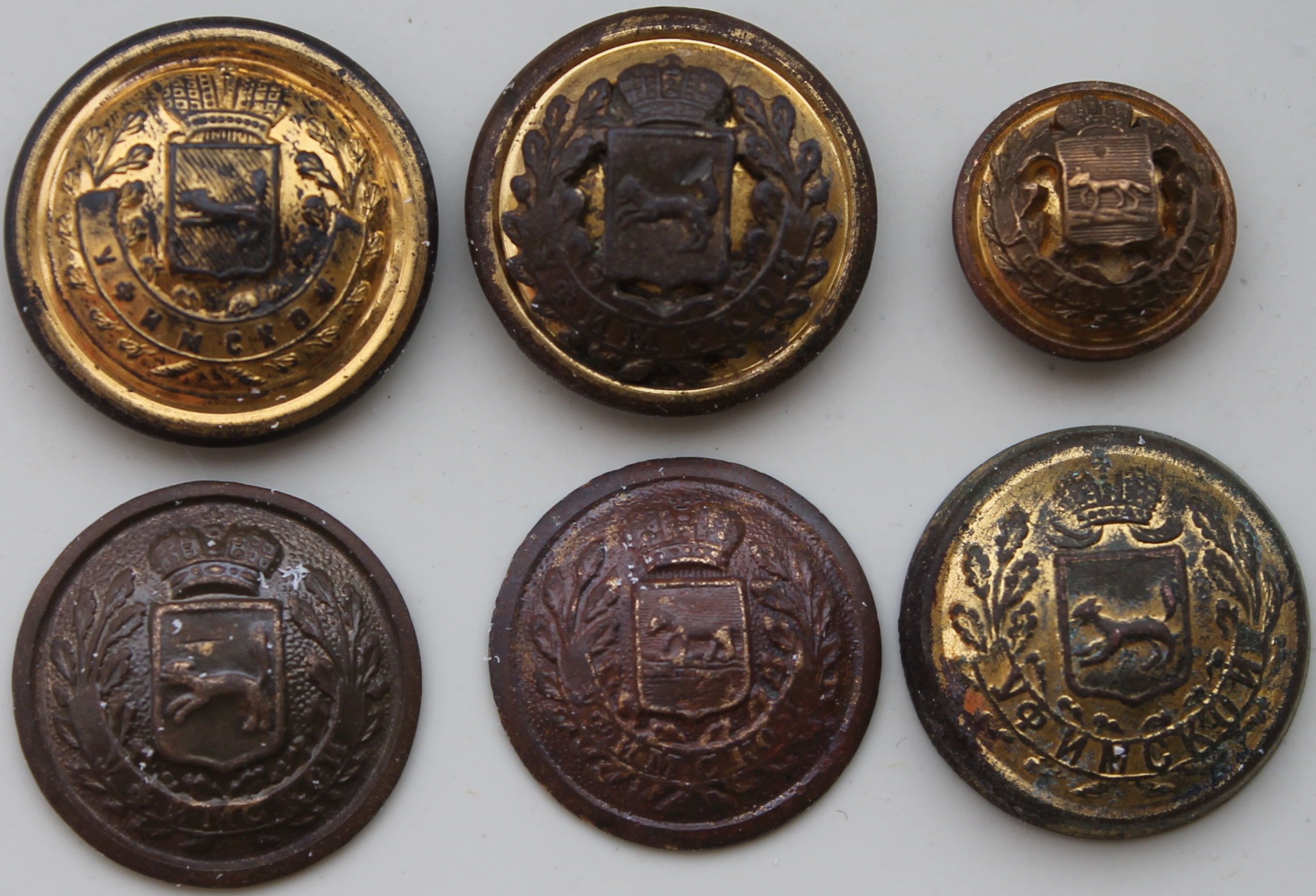 Недавно приобрёл четыре пуговицы Уфимской губернии к уже имеющимся двум (с накладными гербами) и решил сделать небольшой каталог разновидностей. Поискал в Интернете и нашёл изображения ещё 8 разновидностей этой же губернии. Возможно у коллег, собирающих пуговицы есть пуговицы, интересующие меня. Просьба выкладывать фото лицевой и обратной сторон. Вот мои пуговицы.