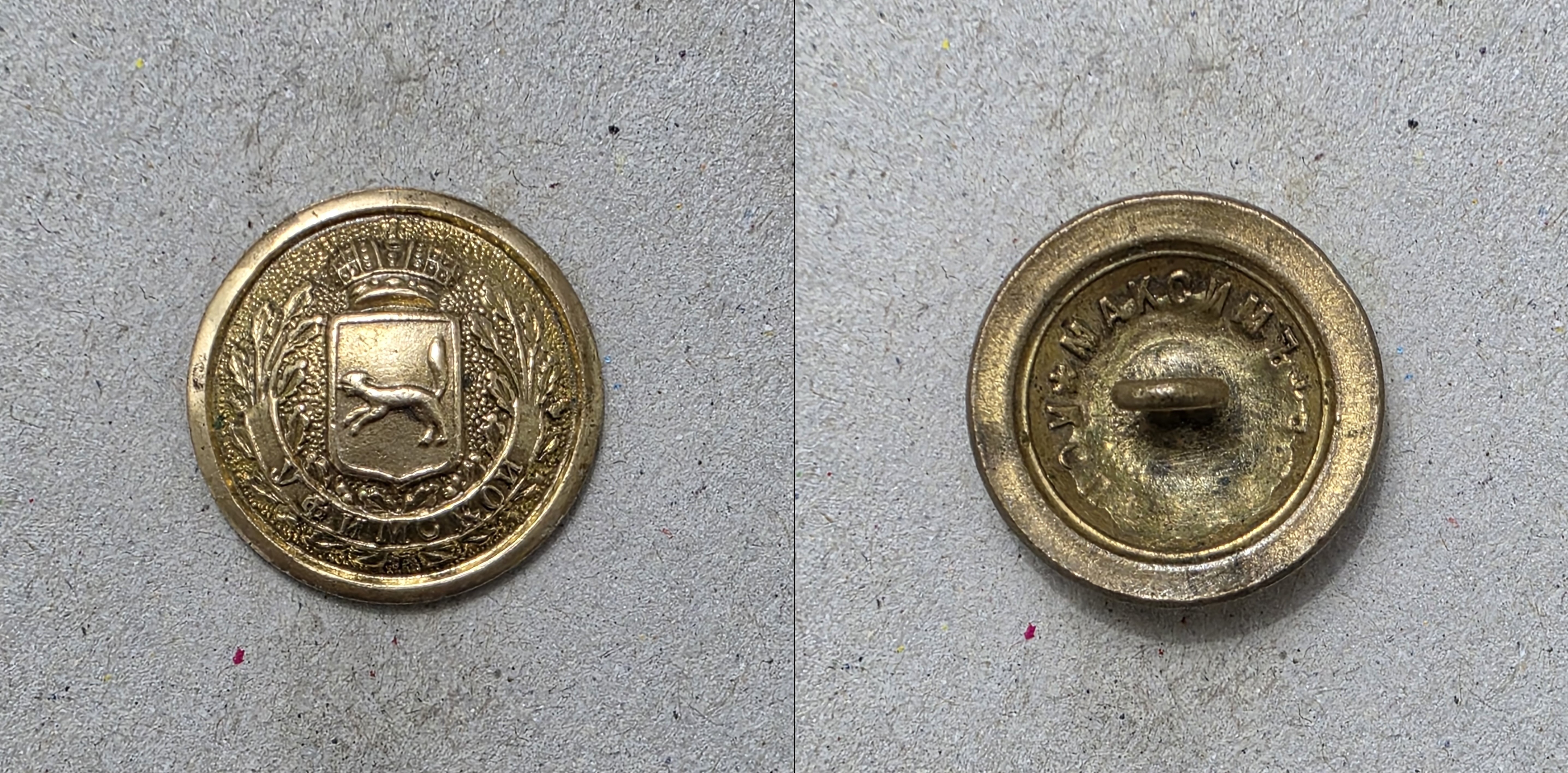 Леонид! Спасибо за фото пуговиц Уфимской губернии. Теперь пуговиц фабрики Ф. ЛИНДЕНЪ диаметром 15 мм две, и обе из Вашей коллекции. Одна составная без накладного элемента, вторая составная с накладным гербом.